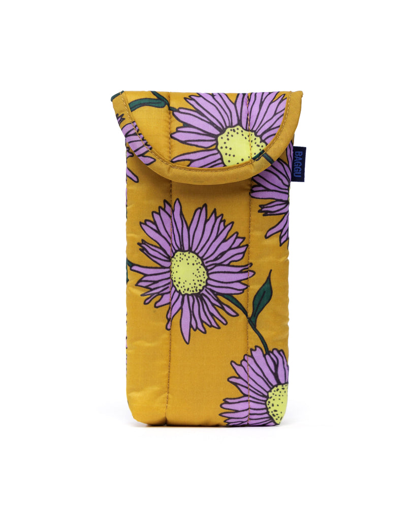 The Puffy Glasses Sleeve in Daisy Chain by BAGGU cushions your sunnies or readers like a protective cloud; it features a magnetic flap closure, and the colour makes it easy to find in your bag.