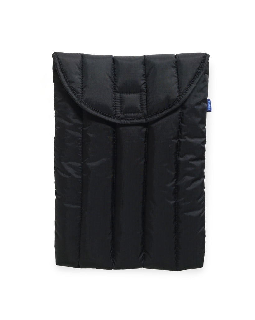 The Puffy Laptop Sleeve in Black by BAGGU gives your laptop a cosy place to live. The quilted and stuffed cover provides your laptop or tablet with enough padding to keep it safe from scratches and knocks.