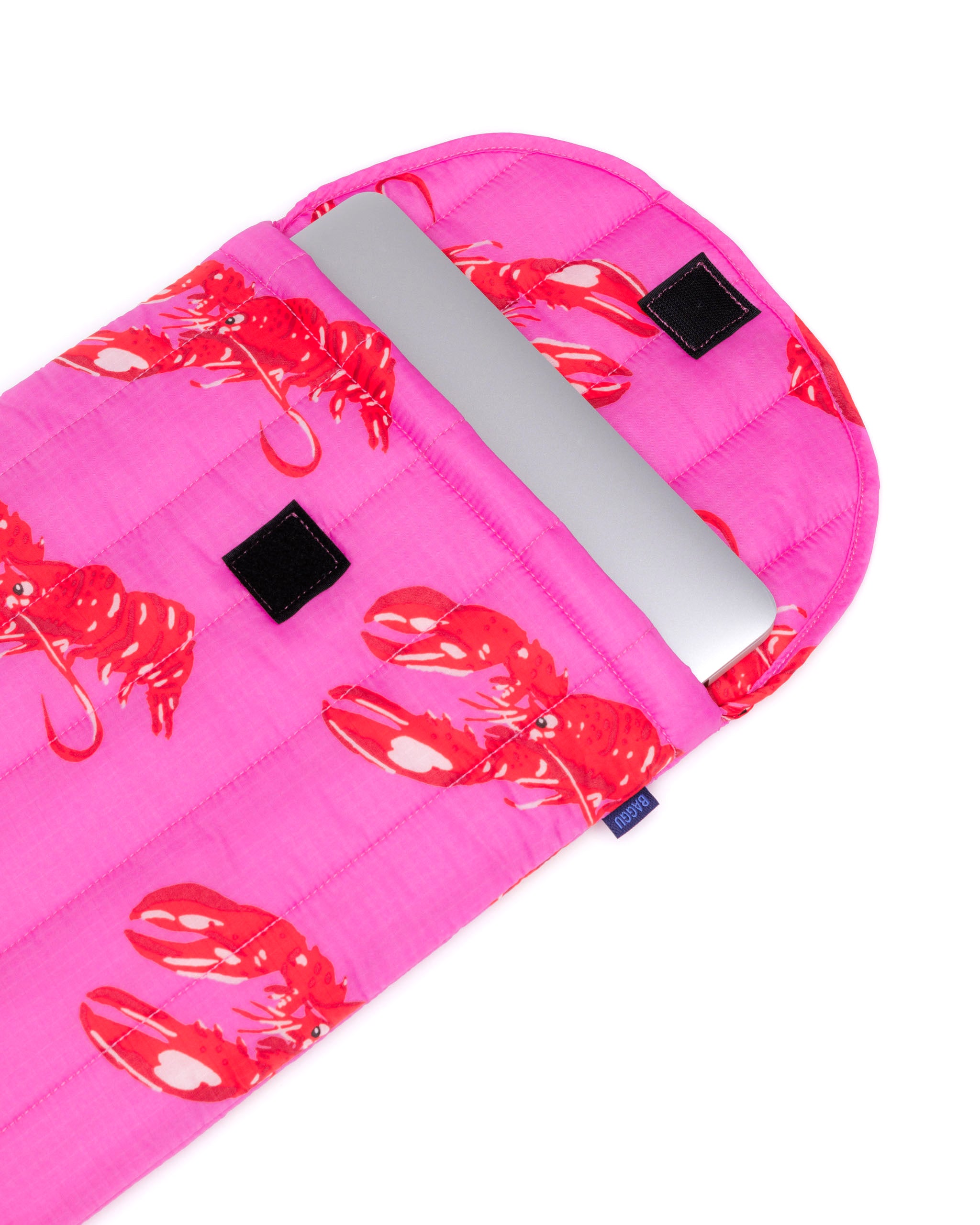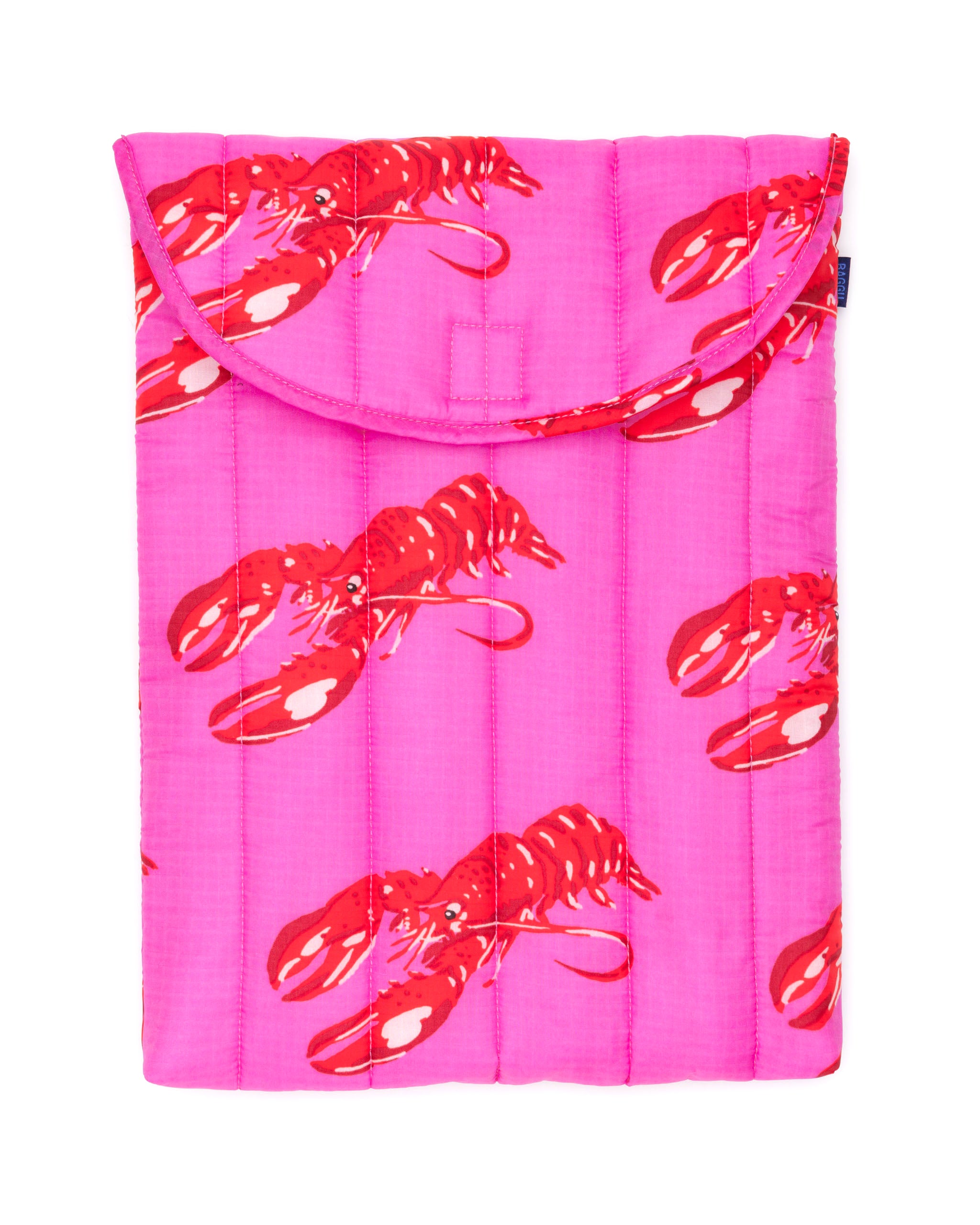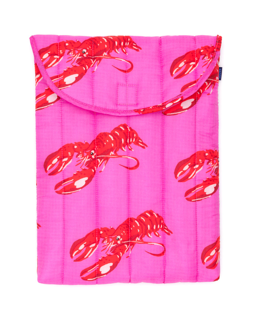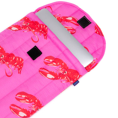 The Puffy Laptop Sleeve in Pink Lobster by BAGGU gives your laptop a cosy place to live. The quilted and stuffed cover provides your laptop or tablet with enough padding to keep it safe from scratches and knocks.