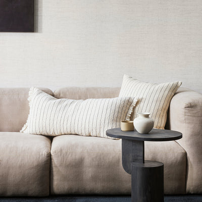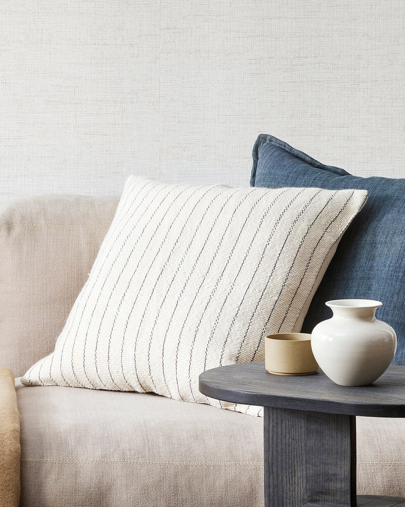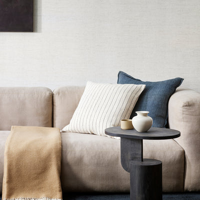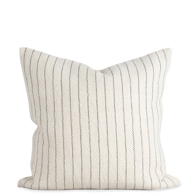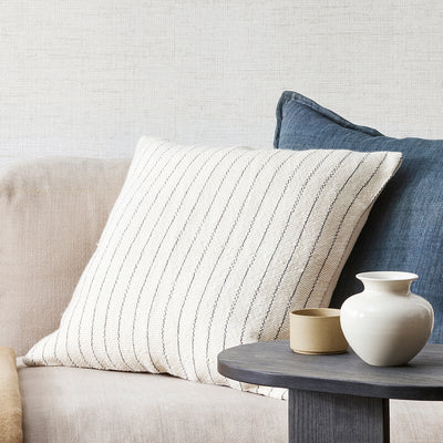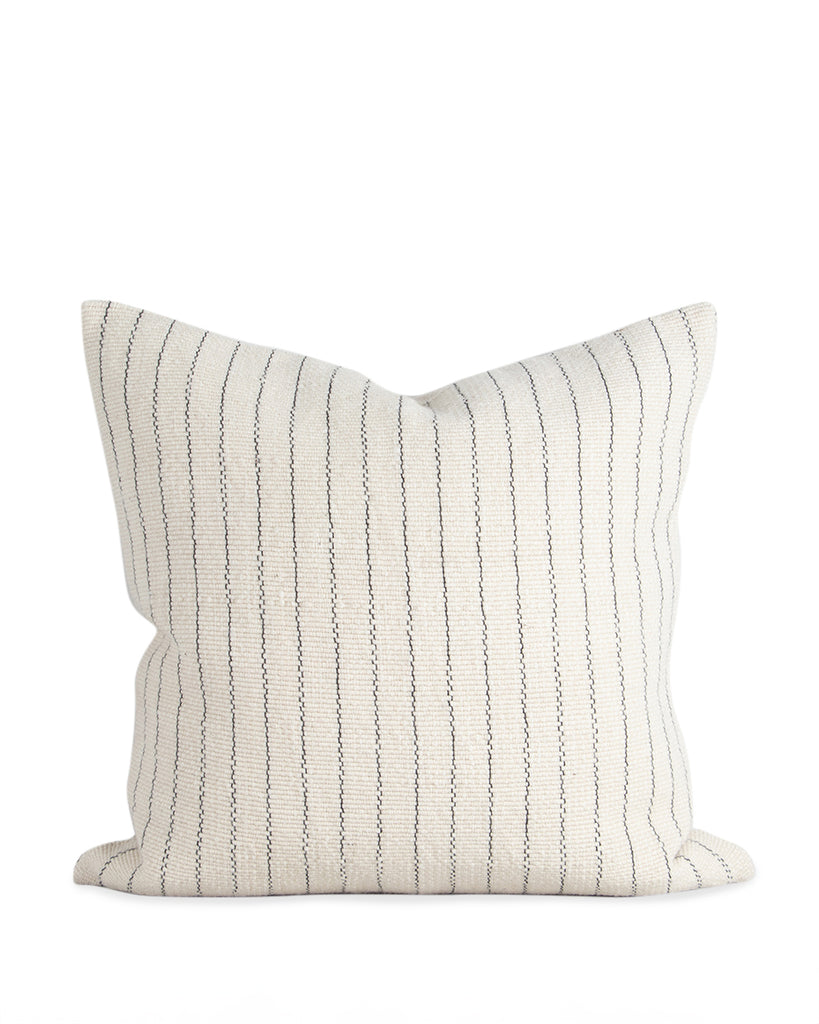 Celebrating the beauty of artisanal woven fabric, the Hokkaido Cushion Cover by Baya is an exquisite textural piece crafted in a neutral tone with a delicate linear design in navy blue. Handwoven from a blend of wool and cotton, the tactile surface creates a cosy and inviting aesthetic.