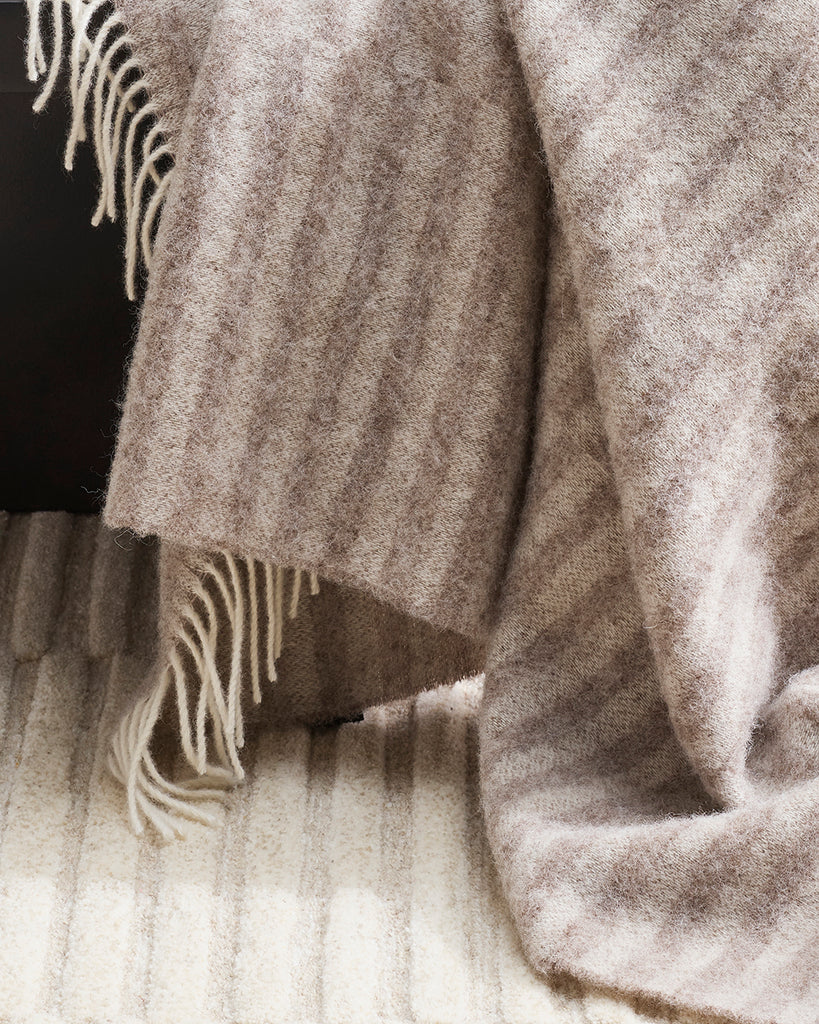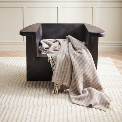 Featuring an offset stripe design, the Noah Throw by Baya is a modern take on a classic stripe, celebrated in this luxurious, pure wool throw. Crafted from New Zealand-grown wool, the timeless design and neutral tones create a sense of warmth and comfort, finished with a traditional twisted fringe.