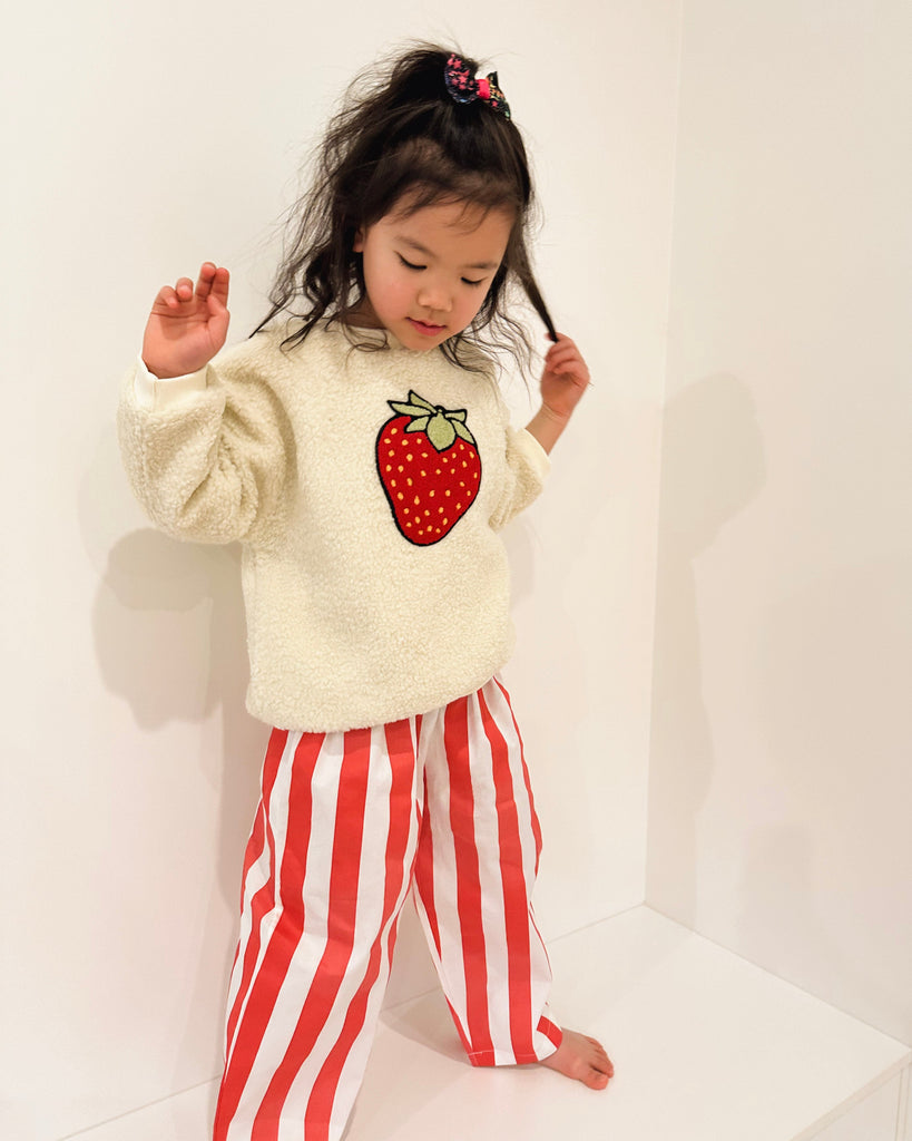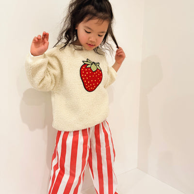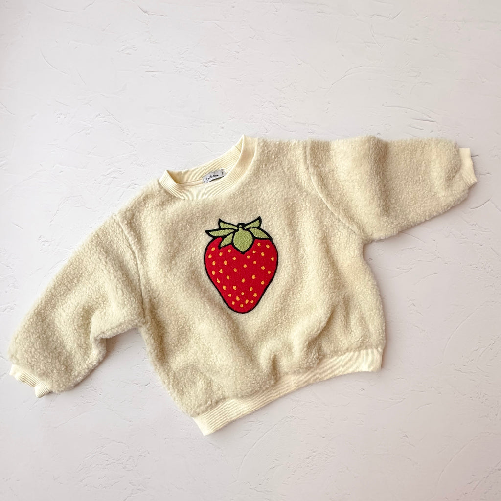 The Strawberry Sherpa Jumper by Bel & Bow is a fully lined oversized style that features a custom-designed chenille strawberry patch that looks good enough to eat. Made from high-quality warm and cosy sherpa fabric and fully lined, your little one will so toasty wrapped up in this sweet jumper.