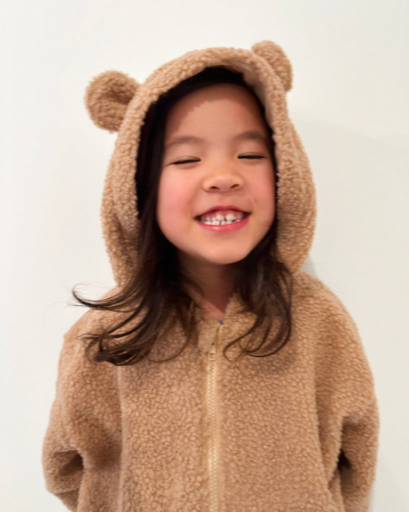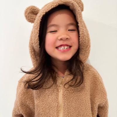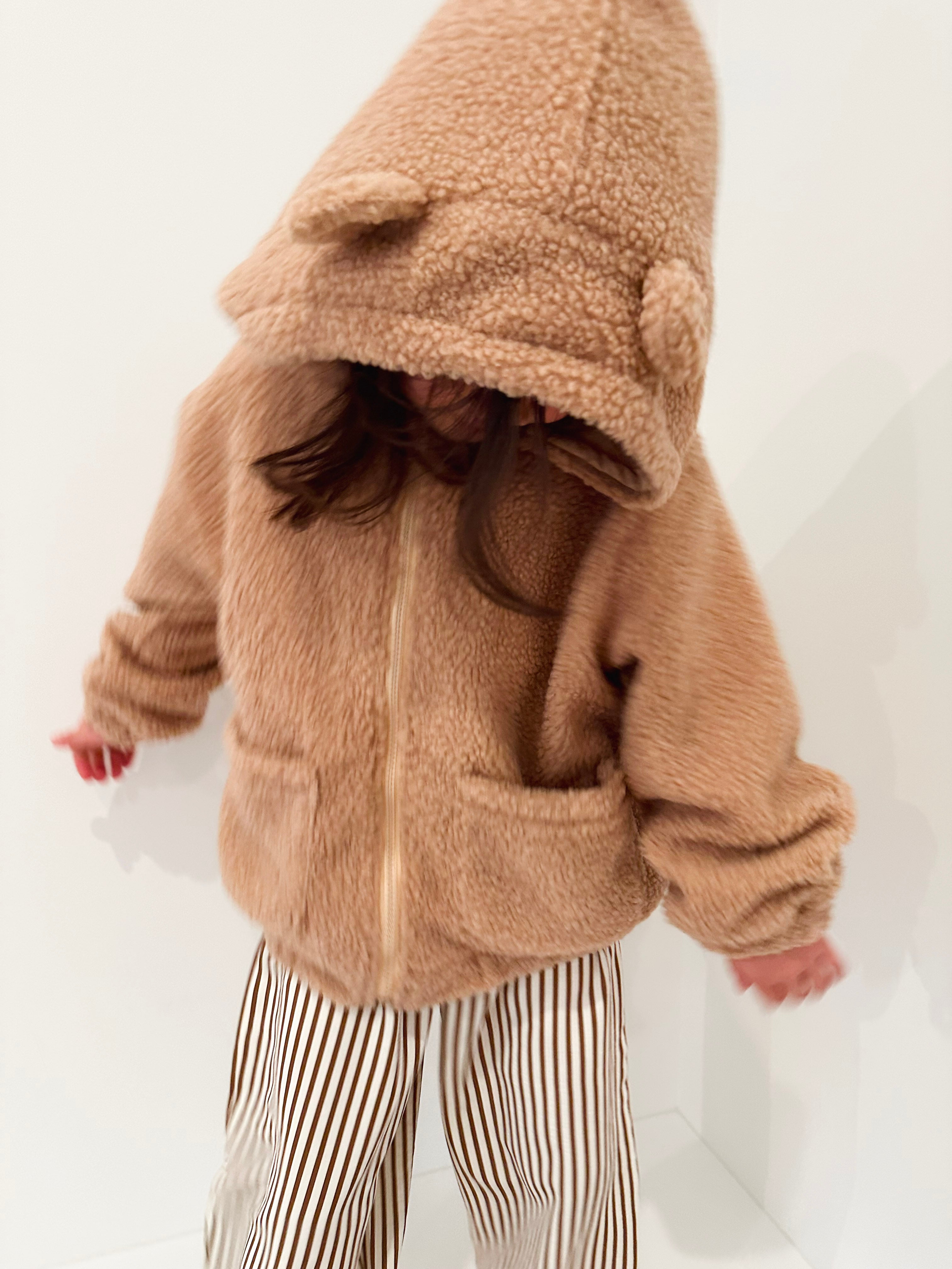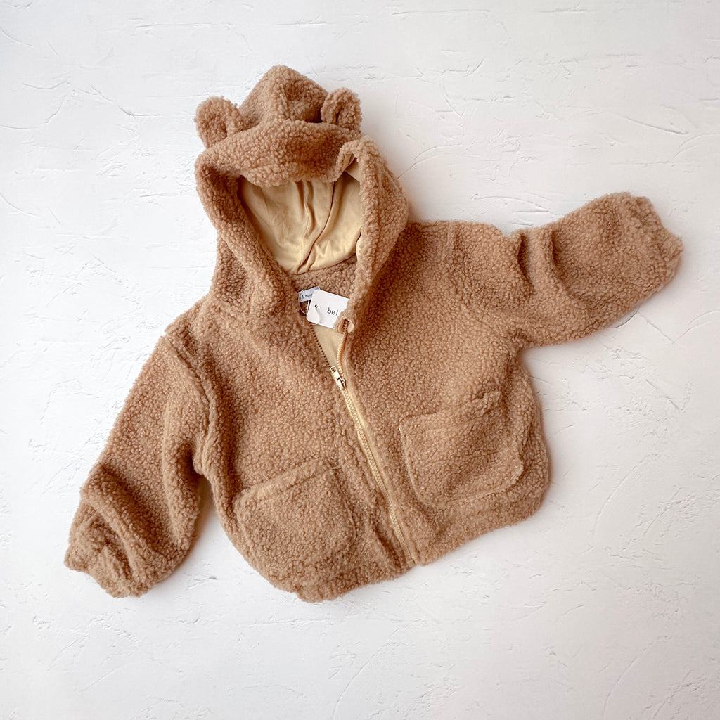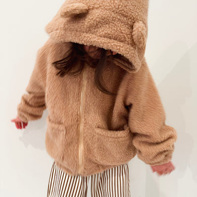 The Teddy Jacket by Bel & Bow is a fully lined zip-up style that features two front pockets and a hoodie with cute bear ears. Made from high-quality warm and cosy sherpa fabric and fully lined, your little one will so toasty wrapped up in this oversized jacket.