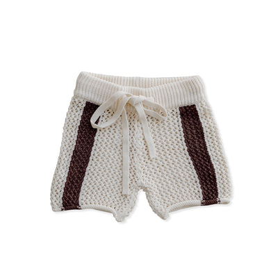 The Crochet Shorts in Coconut by Belle & Sun feature an elasticated waistband and ties for a relaxed fit, cropped in length with rolled edges. Designed to be paired with the matching Crochet Stripes Shorts to see you through the warm months in style.