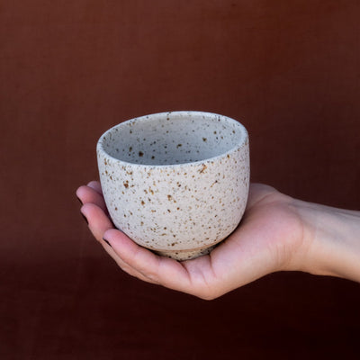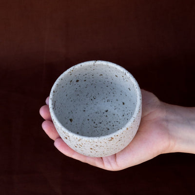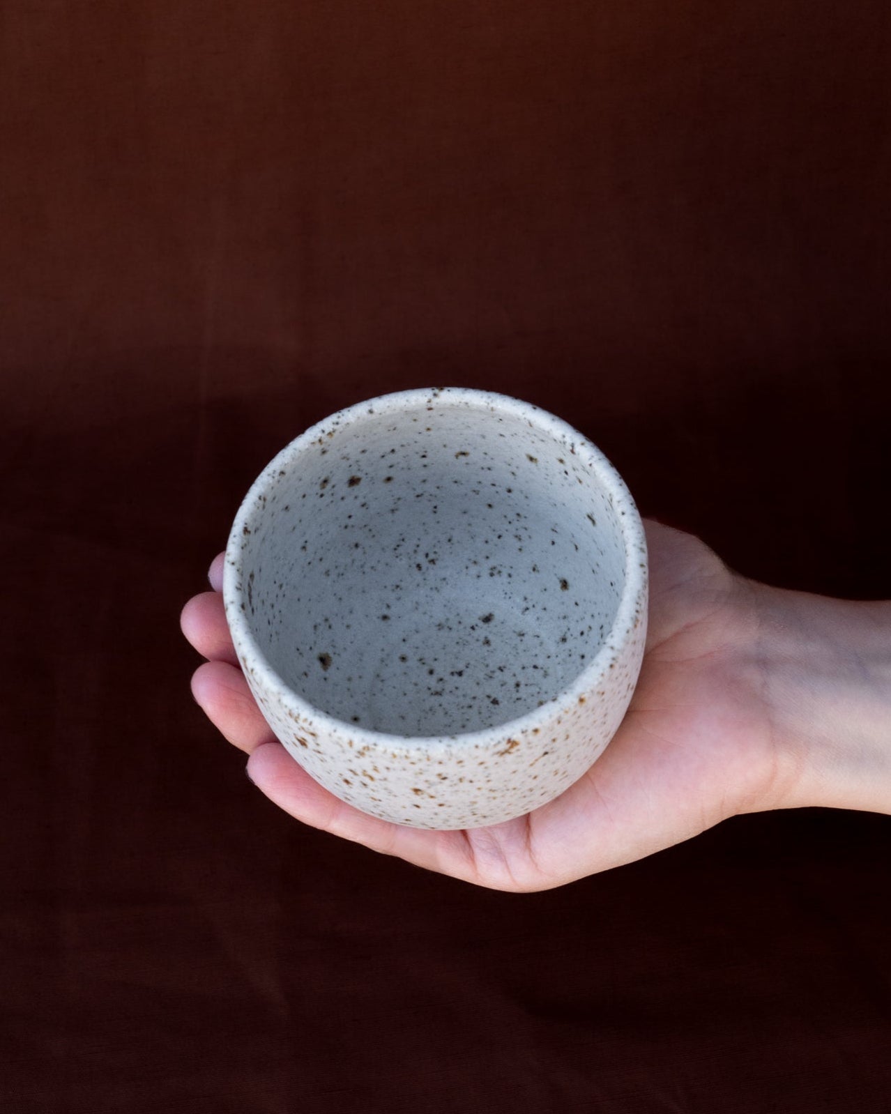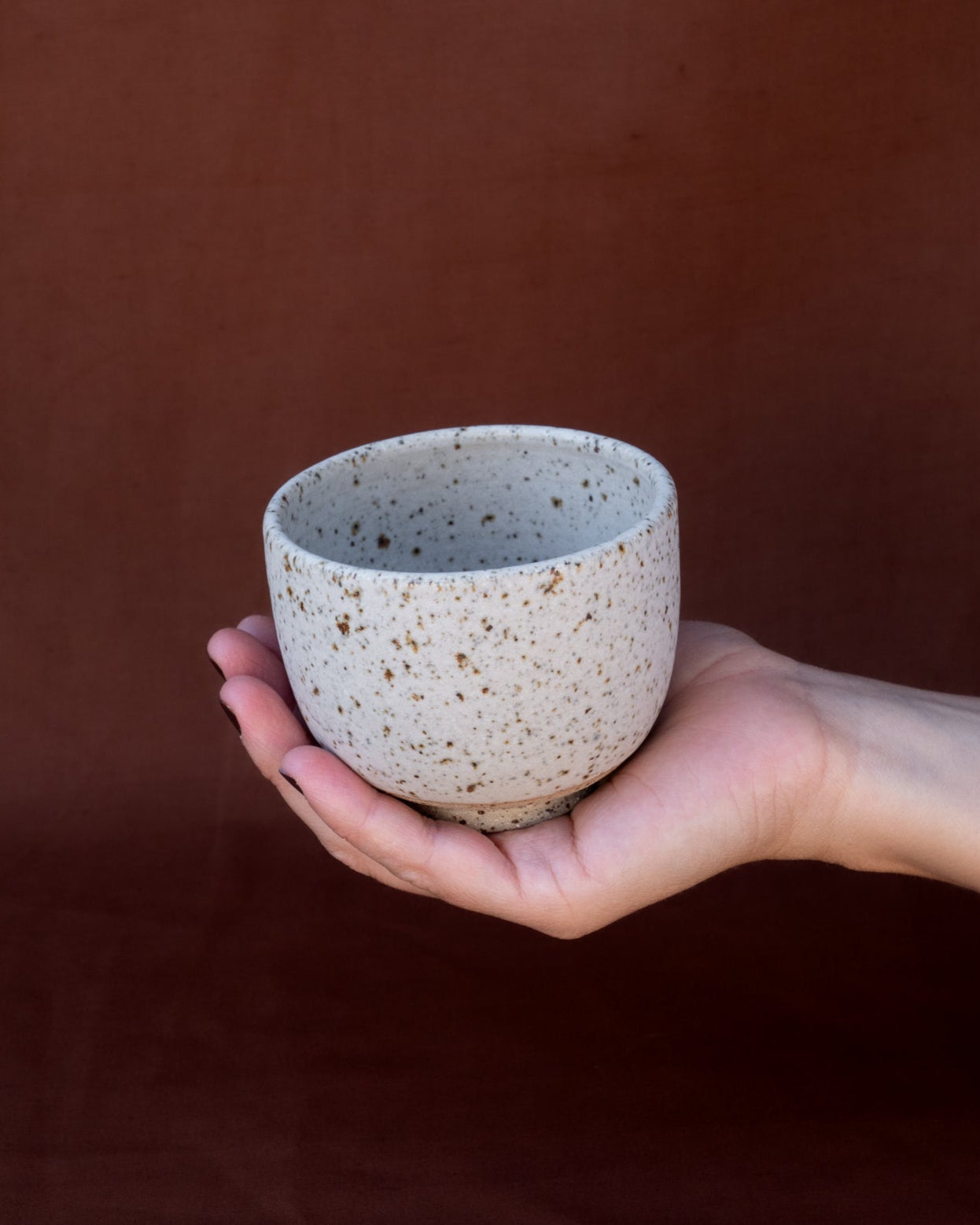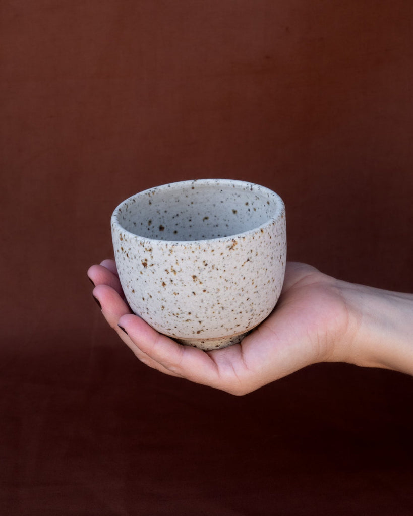 The Speckle Tea Bowl by Biddy Pots is the perfect size to wrap your hands around to enjoy a lovely hot tea or matcha.