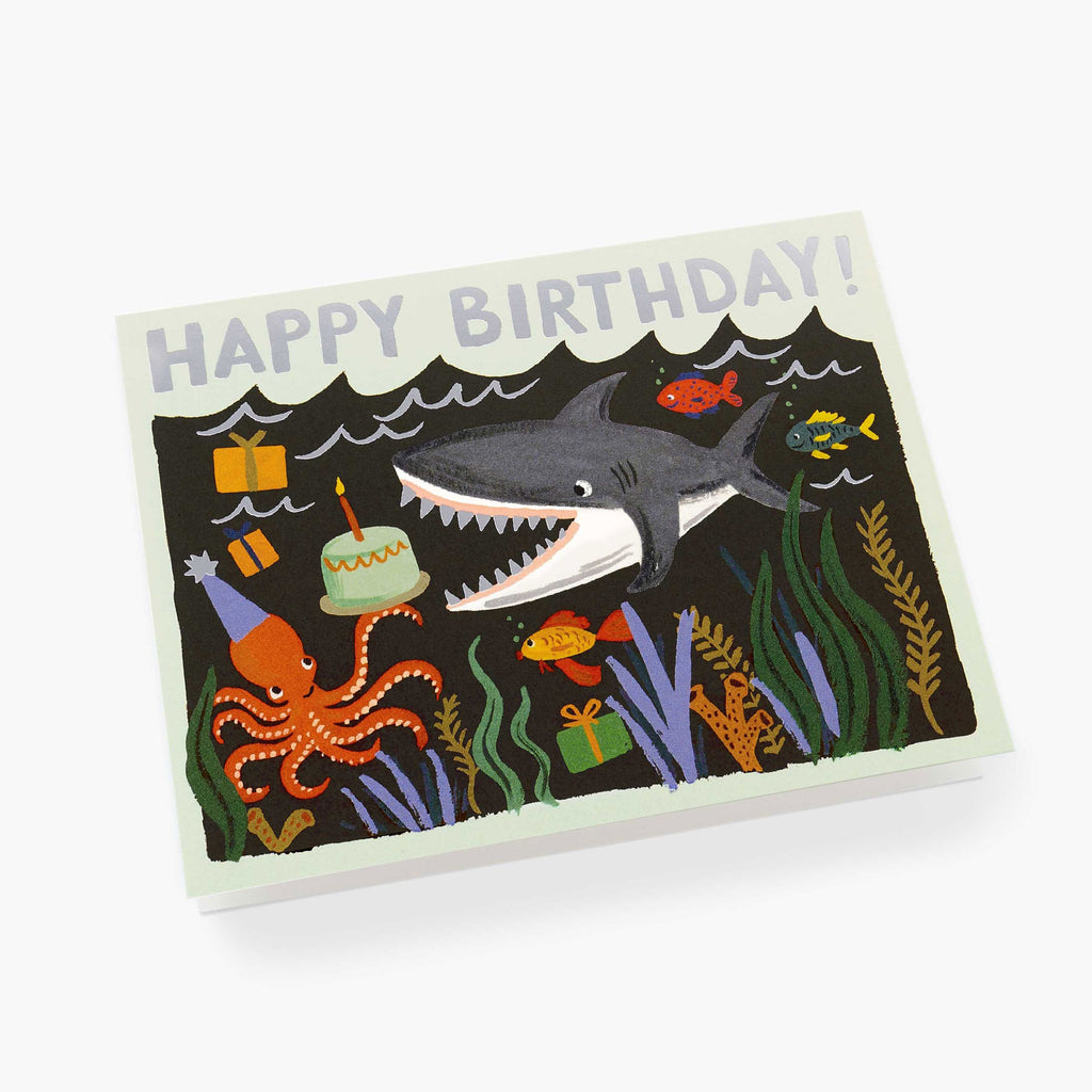 Send a thoughtful message to someone special with the Shark Birthday greeting card from Rifle Paper Co, a blank interior lets your handwritten note take centre stage.