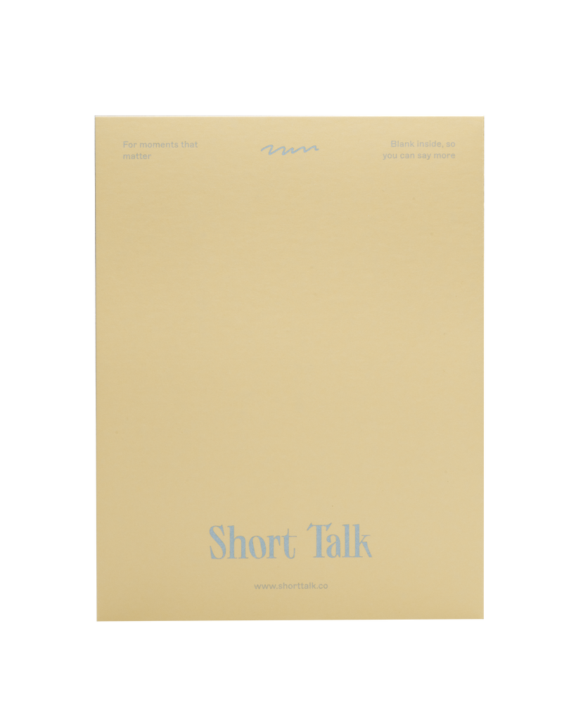 Short Talk is a word gifting brand crafted for moments that truly matter. Born from a nostalgia for the written word, each card is designed as a testament to meaningful connection. Cards to keep with love notes to treasure because our words are gifts too.
