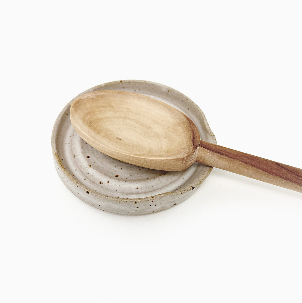 Ceramic Spoon Rest in Cloud by New Zealand-based ceramicist, Deborah Sweeney. A lovely addition to pop next to your cooktop essentials. Created using NZ-sourced clay and volcanic sand with a matte glaze; to create a little piece of New Zealand magic.