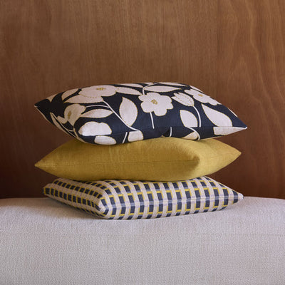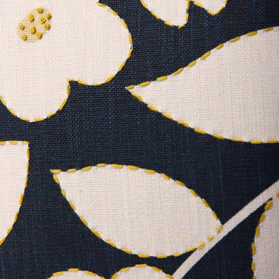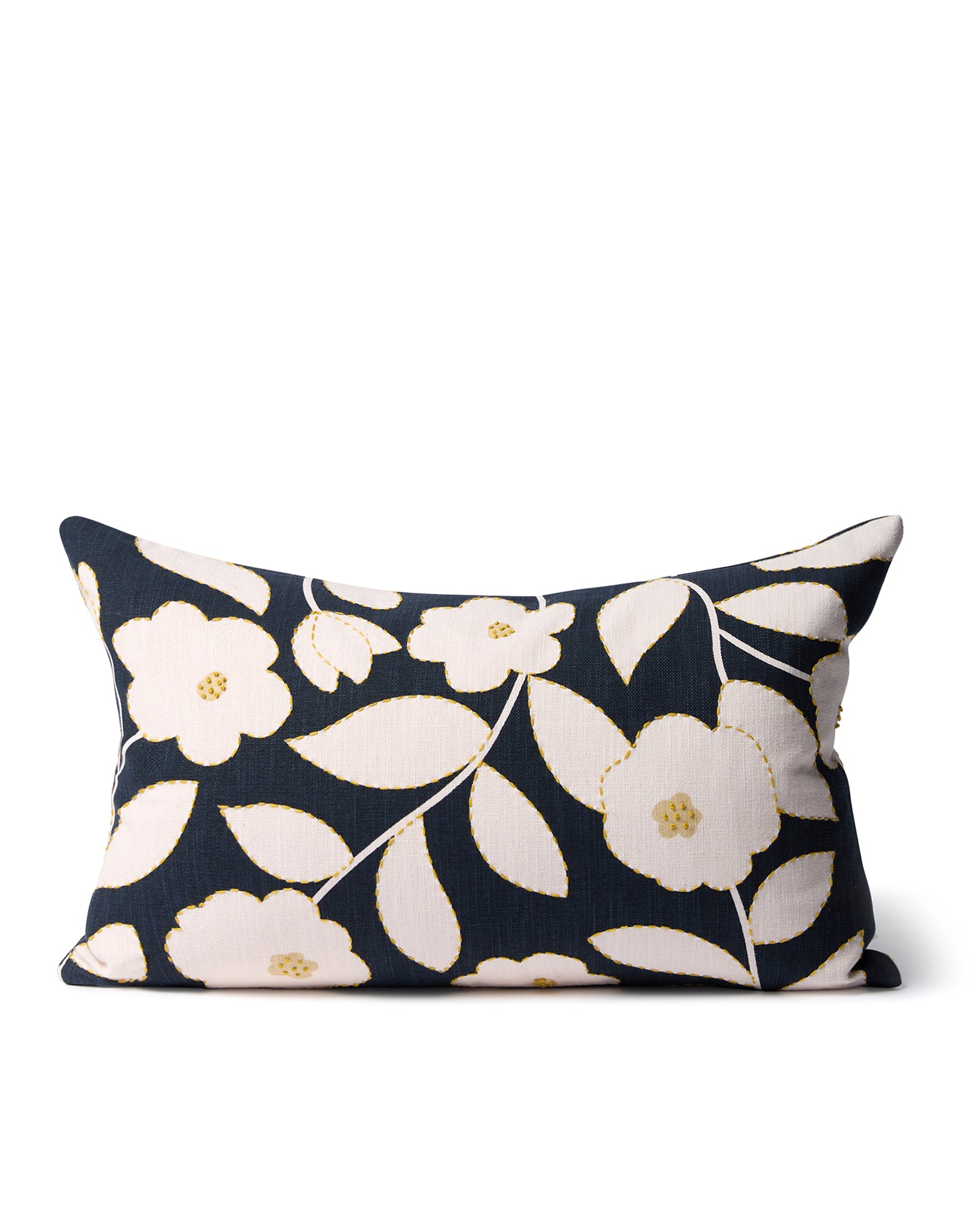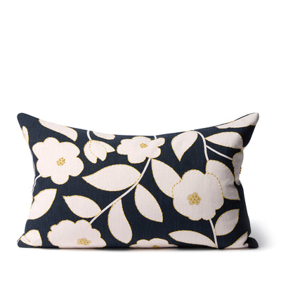 The Ebisu Cushion Cover by Città makes a statement with its graphic floral design inspired by the iconic cherry blossom. Handwoven running stitches and delicate French knots add visual interest and texture.