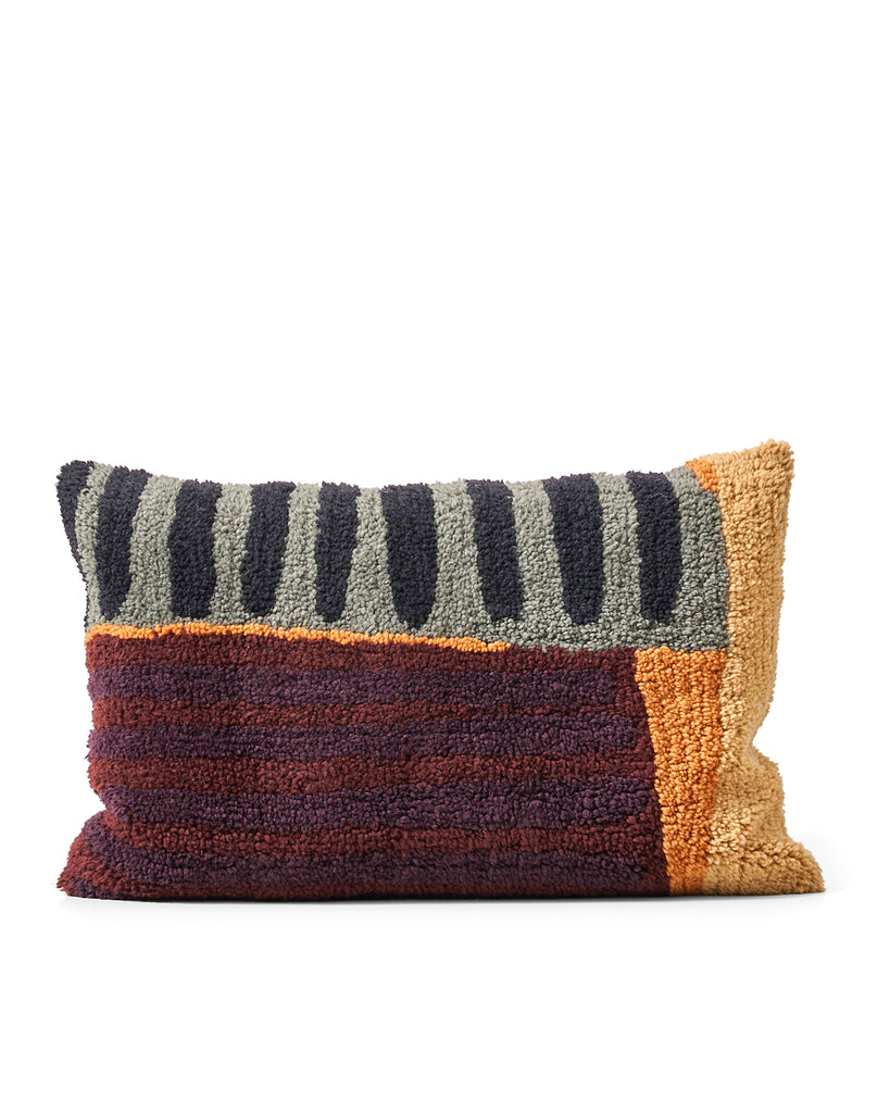 Città designer Imogen Tunnicliffe drew inspiration from mid-century aesthetics, particularly ‘rya’ rugs. The cushion features a pattern hand-painted by Imogen, showing abstract interpretations of elements from her home. The front is made from soft, fluffy wool, while the back is made from heavyweight cotton canvas.