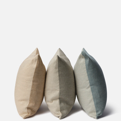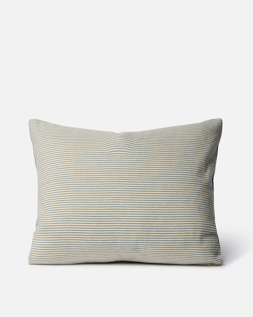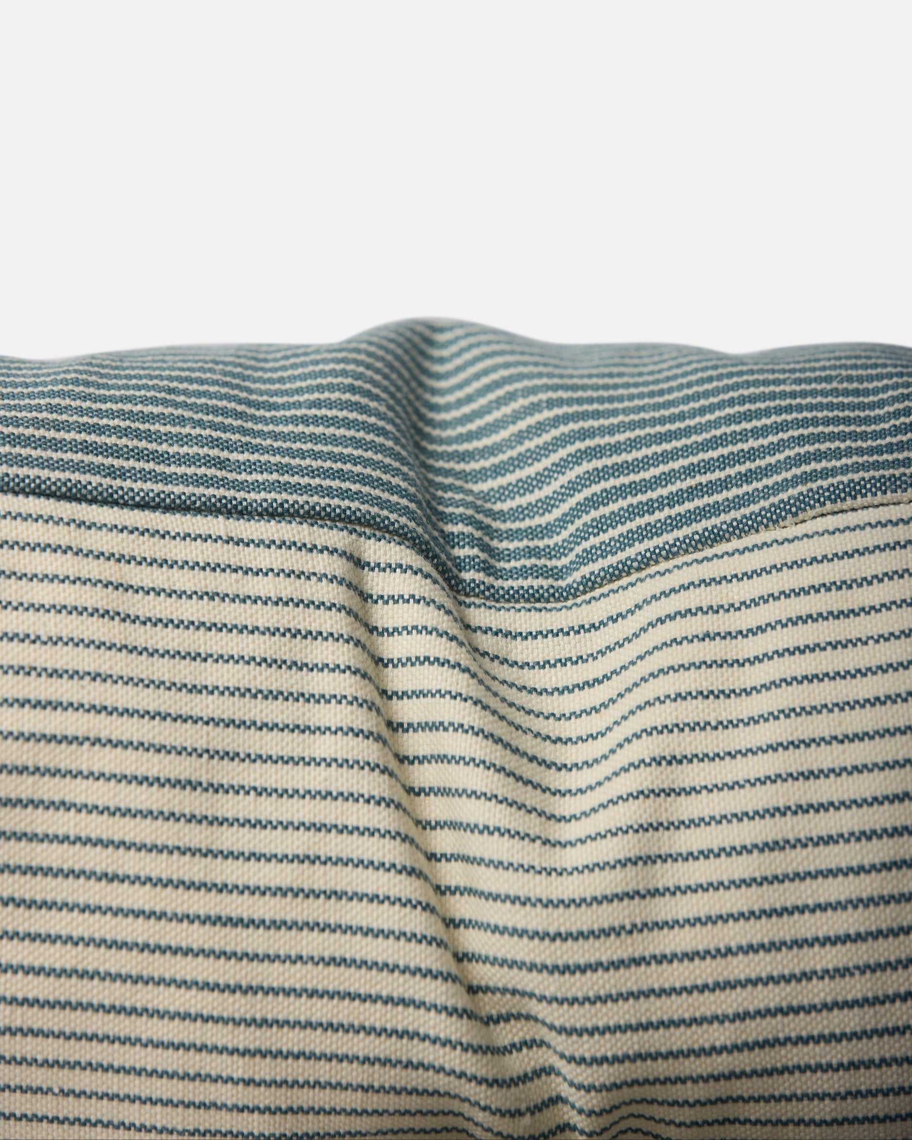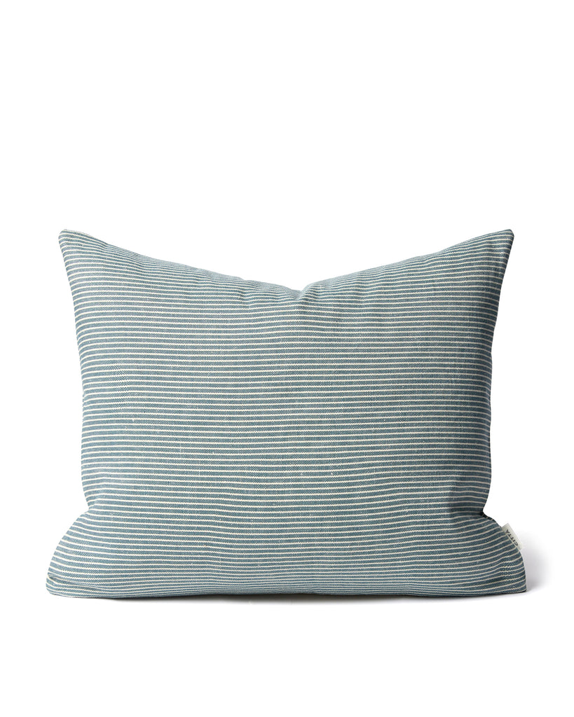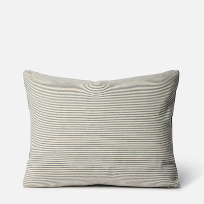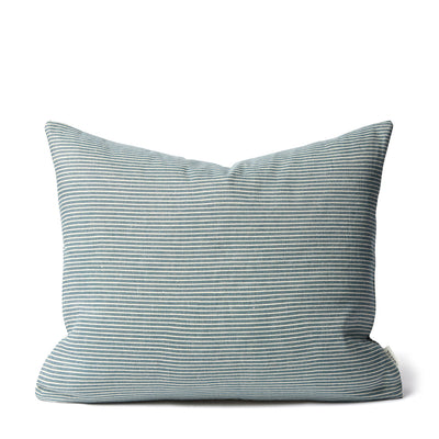 The Reversible Pinstripe Cushion Cover by Città offers versatile styling. Featuring creamy coconut and cool blue hues, it can be displayed on either side to showcase the inverted stripe design.