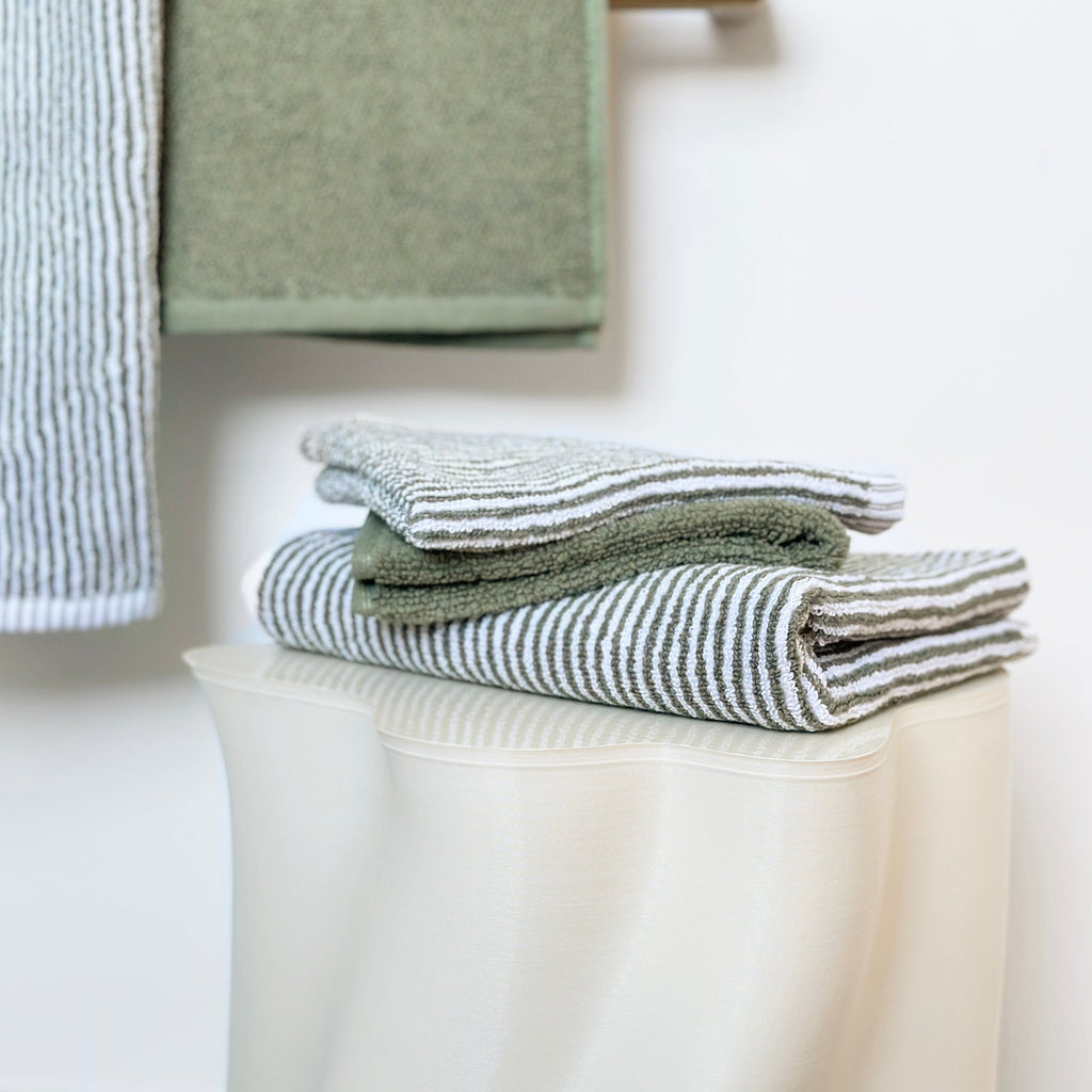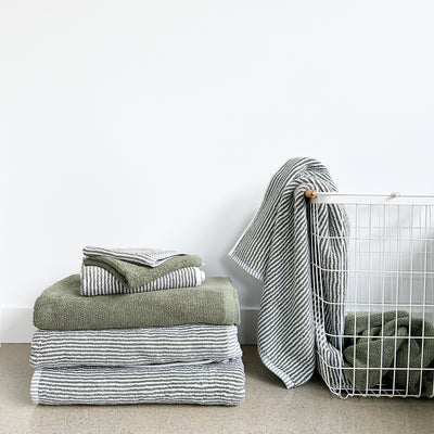 These Classic Towels in Olive & White Stripe are part of the Essentials collection from New Zealand homewares & lifestyle brand, Città Design. The range features timeless staples for everyday living, mix and match with the olive colourway for a fresh look.