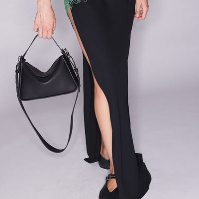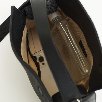 The Horse Clementine Bag in Black is the epitome of understatement. Made in soft, textured leather, the Clementine has hand-painted trims, including an adjustable wide strap to ensure it rests comfortably on your shoulder. There's plenty of space inside for your daily essentials. It has a flat base with protective feet and a curved top handle to sit unhindered on the shoulder or arm.
