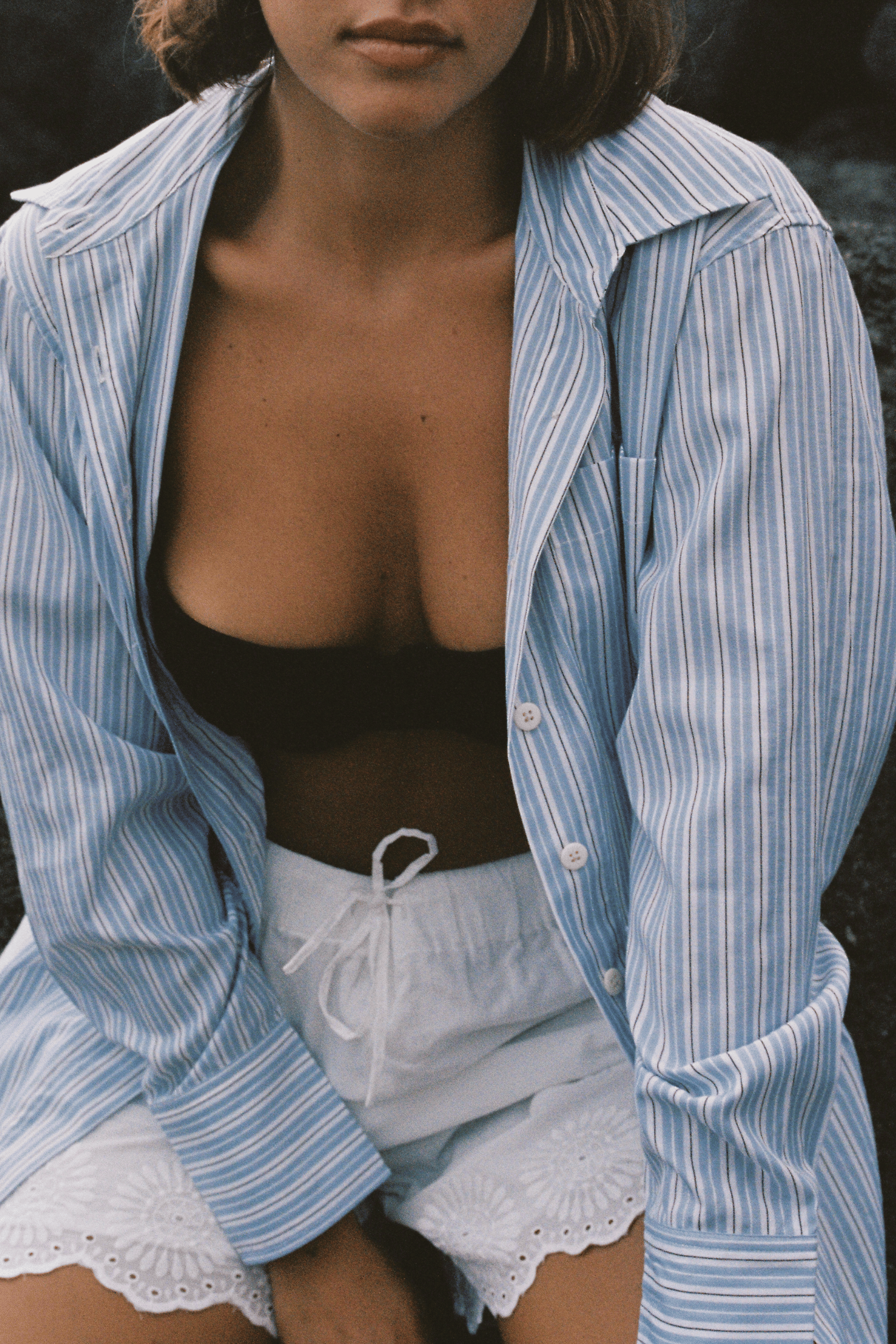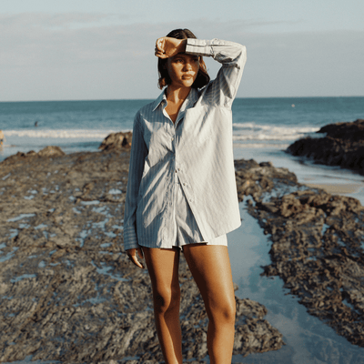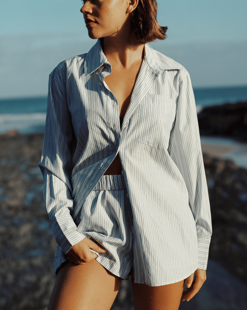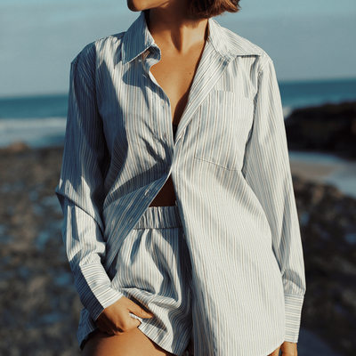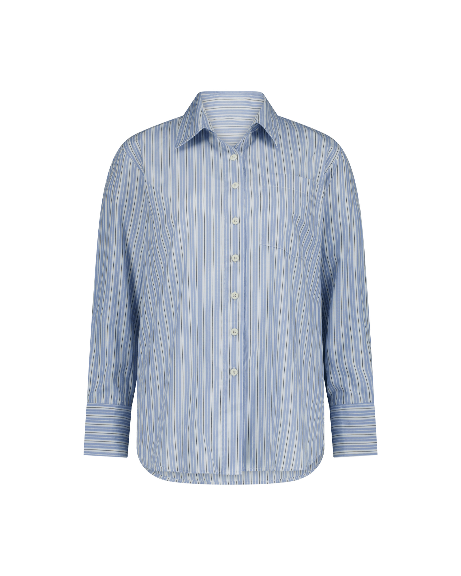 The Good Days Shirt in Blue & White Stripe by Commonplace is a relaxed shirt in breathable cotton with a curved hem and boxy fit. Buttoned up or worn open, it's built for good days and better nights. Cut slightly closer to the shoulder than the Ease & Classico styles.