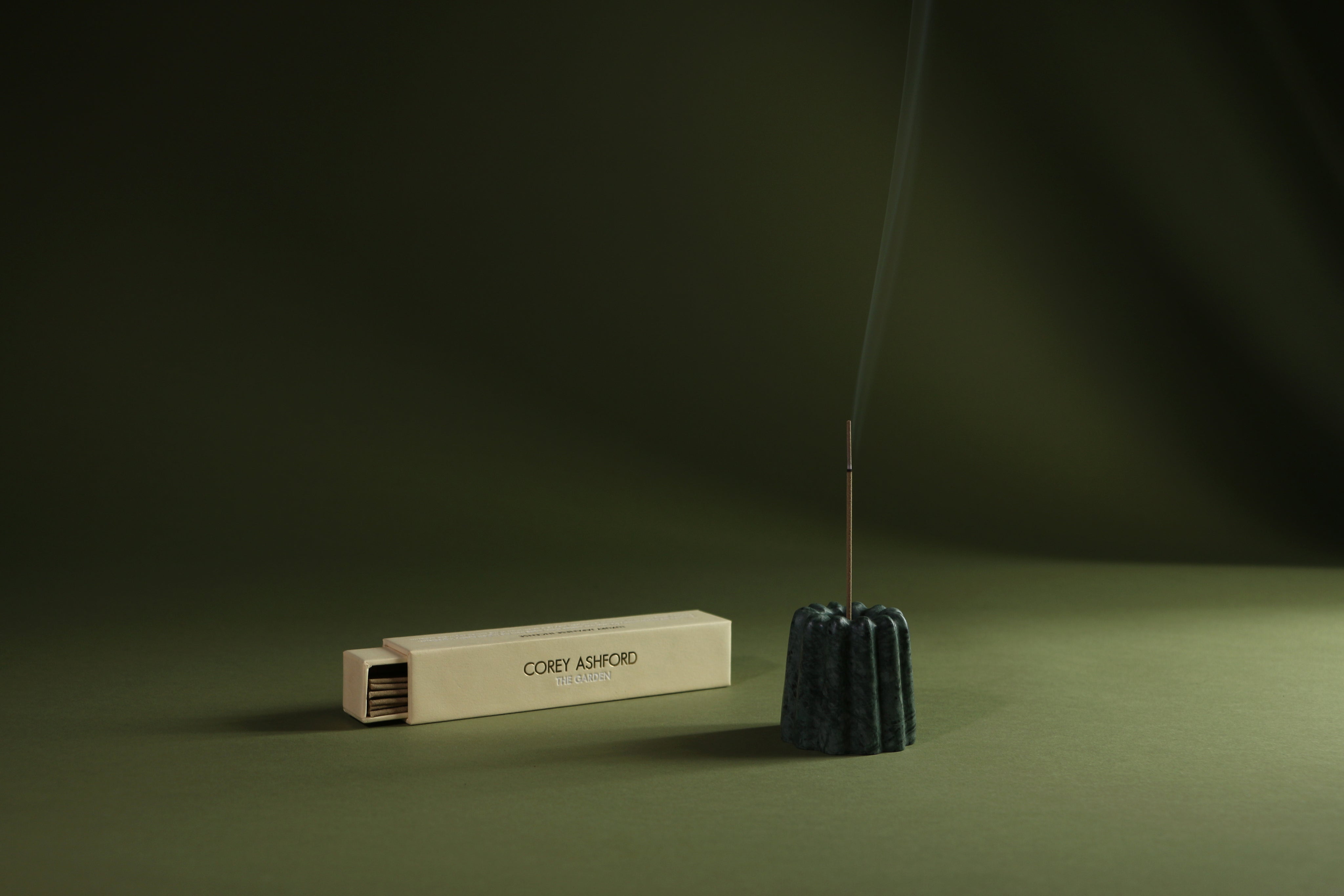 The Garden Incense by Corey Ashford. The sun warms your face as you pick a flower, the sharp verdant scent of the stem cuts through the floral perfume, while warmed woods ground your visit to the garden.