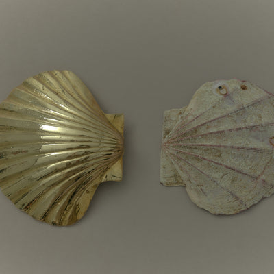 Material: Brass, the Scallop will age and patina over time. Being handmade, variations in the finish only add beauty to each piece and show their dissimilarity to the mass-produced. Markings have intentionally been left on the piece to mimic the natural formation of a scallop shell.