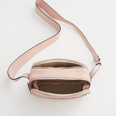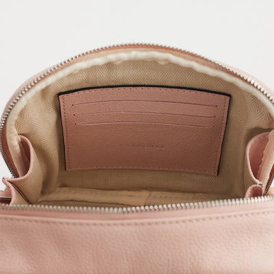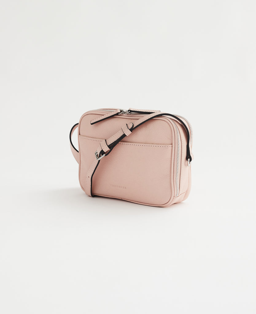 The Horse Dylan Crossbody Bag in Pink is ready for weekends at home and holidays abroad. This compact style opens to two twill-lined compartments, the main compartment is sized to carry all your essentials plus, sunglasses and keys along with 3 card slots and a slip pocket. Stow your phone and need-to-reach items on the external slip pocket. Finished with tonal topstitching, and a discreet logo at the base. The thick buckled strap can be adjusted to your perfect drop.