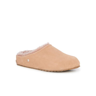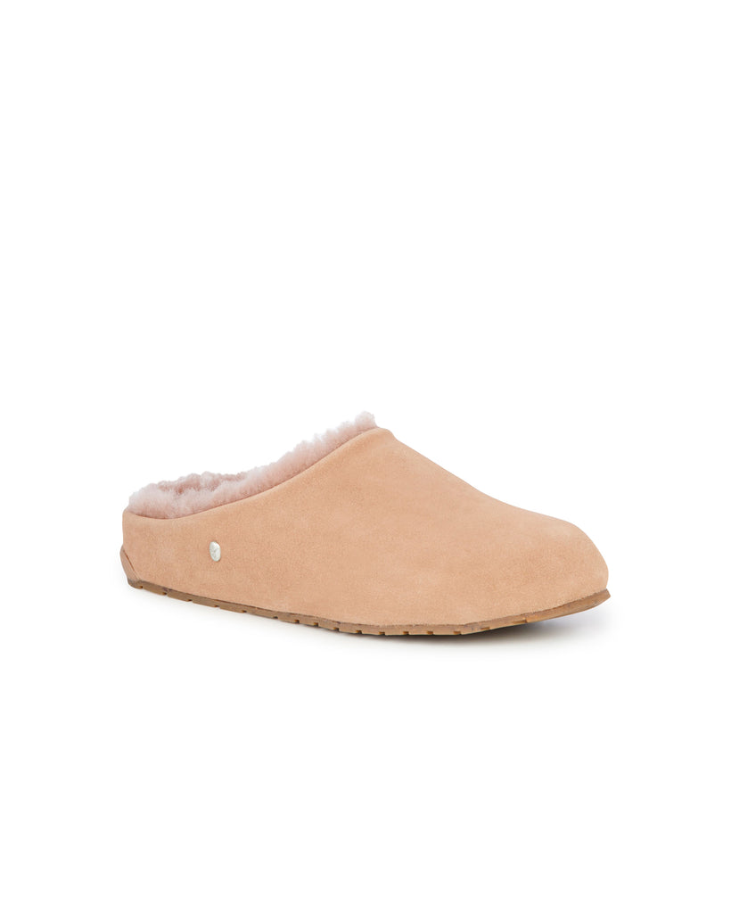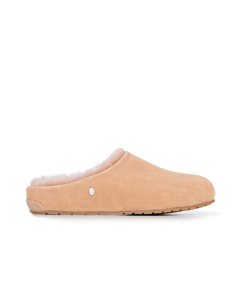 Your lounge look just got updated with EMU's Monch Slippers in Camel. These fashionable and comfortable mule slippers are made for both indoor and outdoor wear. The flexible rubber and cork outsole offers support and traction, while the sheepskin keeps your feet warm.