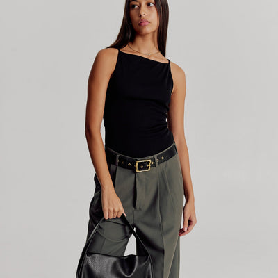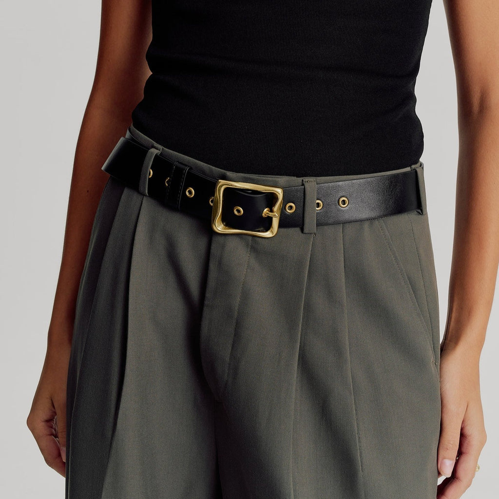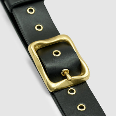A premium finishing touch: adjustable, classic and timeless, the Everyday Belt in Black with Gold by Brie Leon is the latest wardrobe staple. The gold eyelets and brass buckle design elevate existing looks.