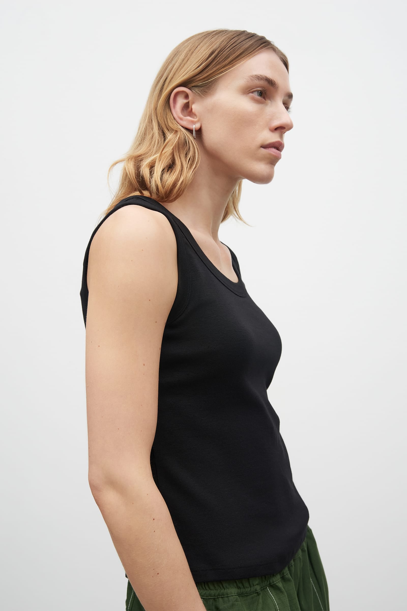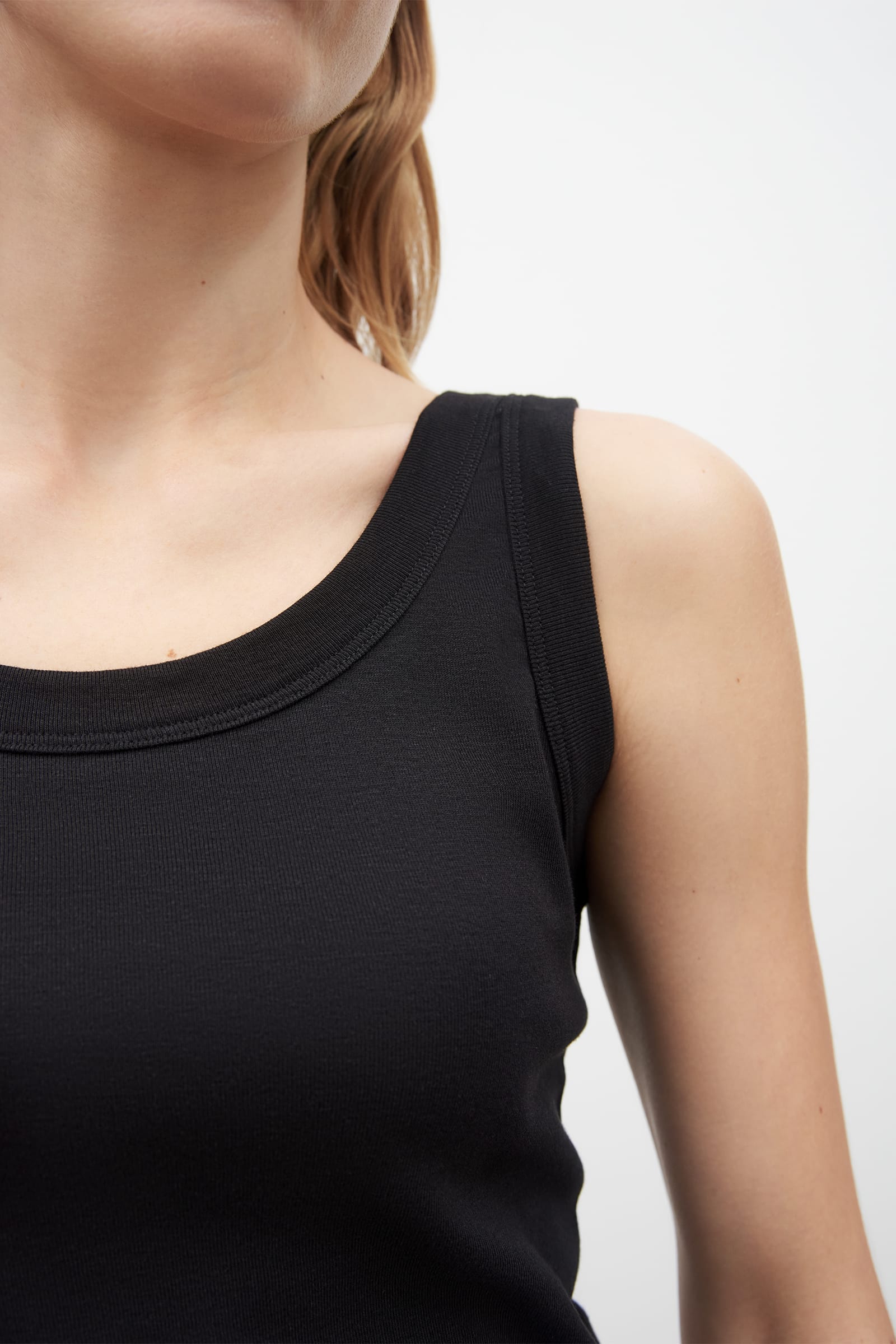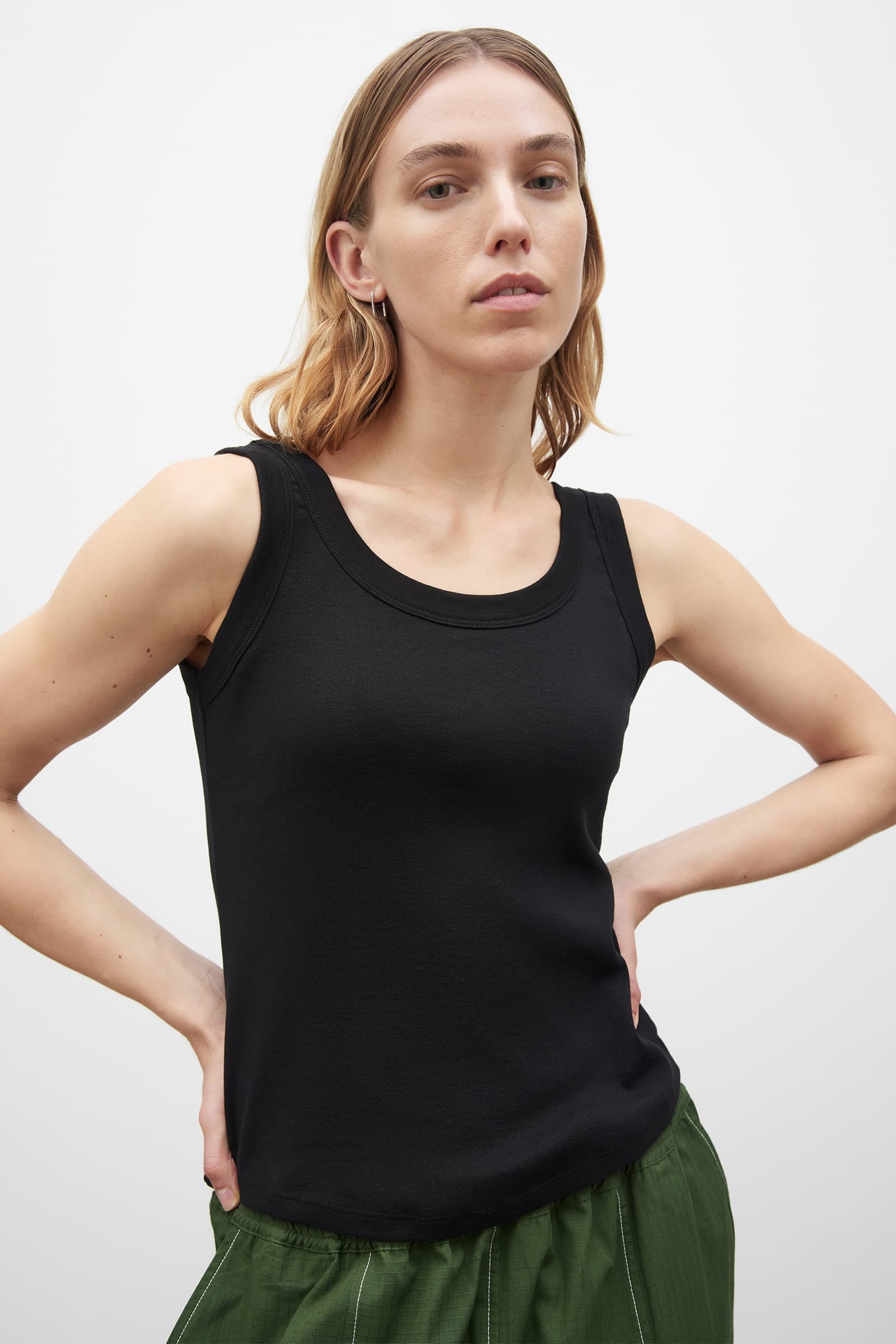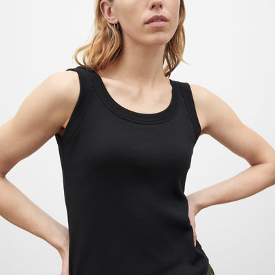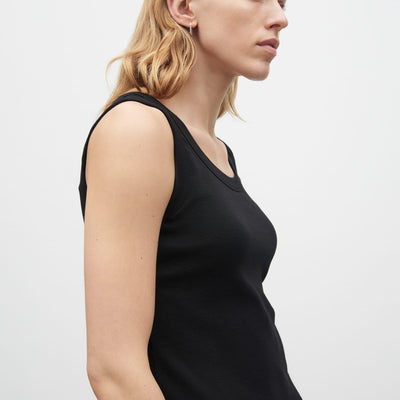 The Everyday Singlet in Black by Kowtow is designed for daily wear, it has a close fit and a wide scoop neckline at the front and back. Finished with ribbing around the neck and armholes, the Everyday Singlet is an effortless piece.
