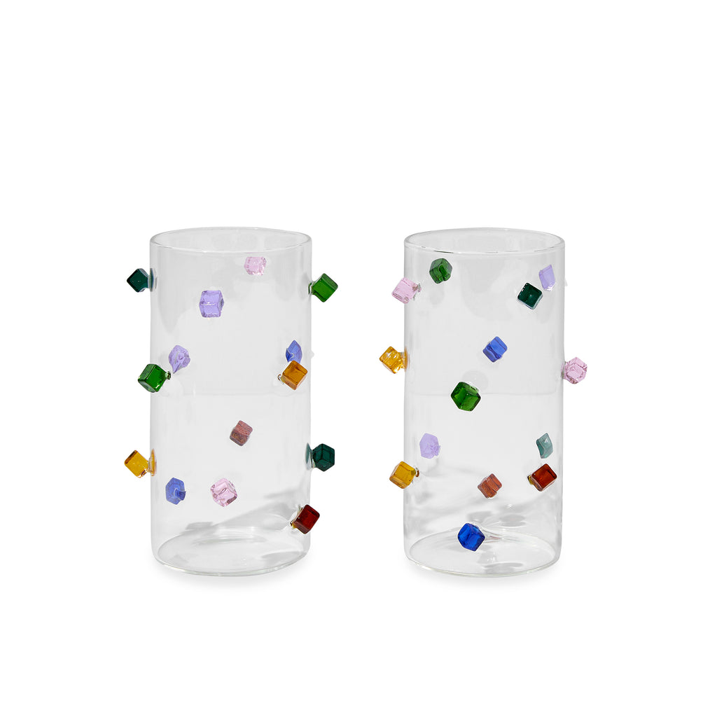 Bejewelled and a beauty to admire, the Jewel Highball Set is anything but two-dimensional. Handmade, coloured glass cubes are the feature of this vase which can only be made better with the addition of your favourite flowers.