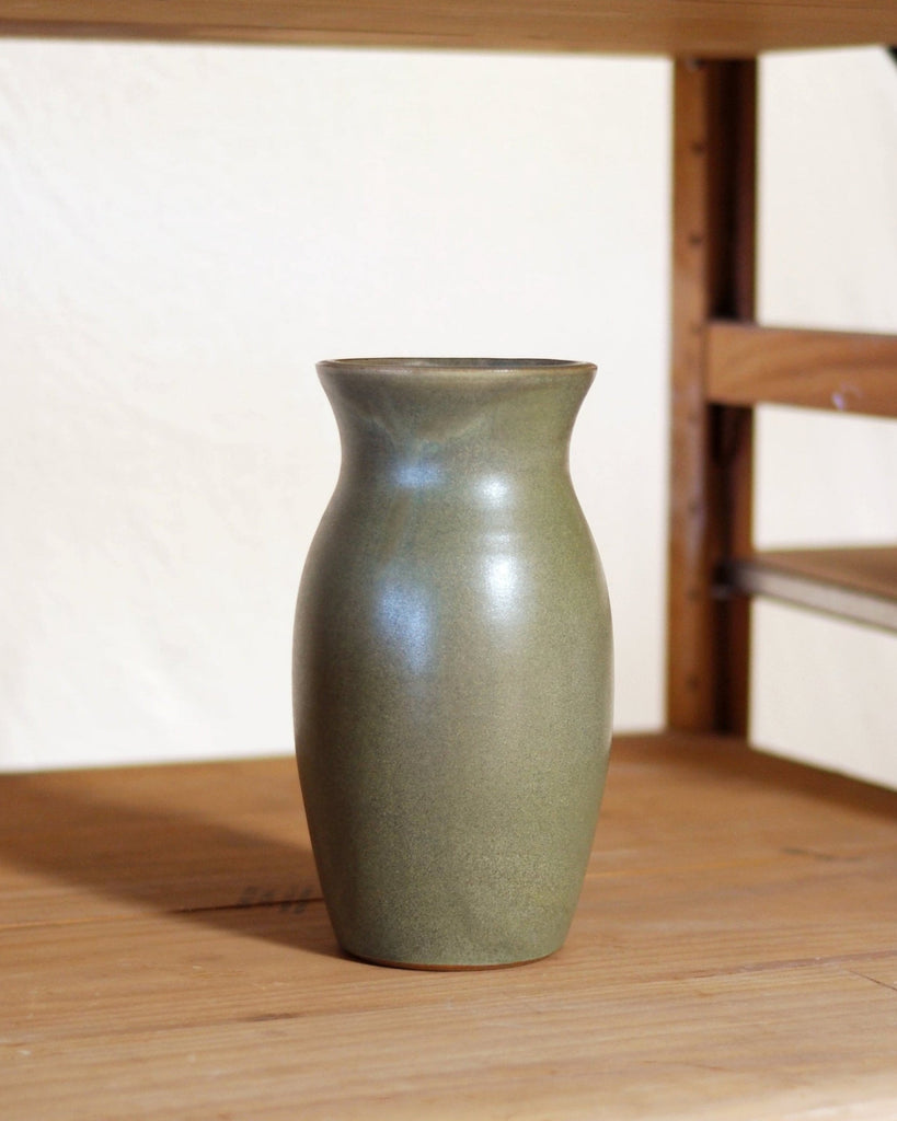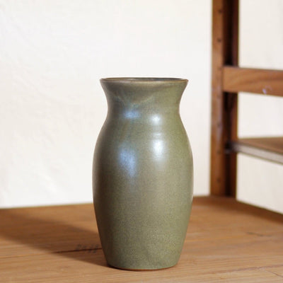 The Vita Vase by Goodwin Ceramics is handcrafted in Waikato buff stoneware clay and fired with a matte Verde Green glaze. The perfect vase for your fresh flowers and even looks great displayed on its own as a sculptural piece of ceramic art.
