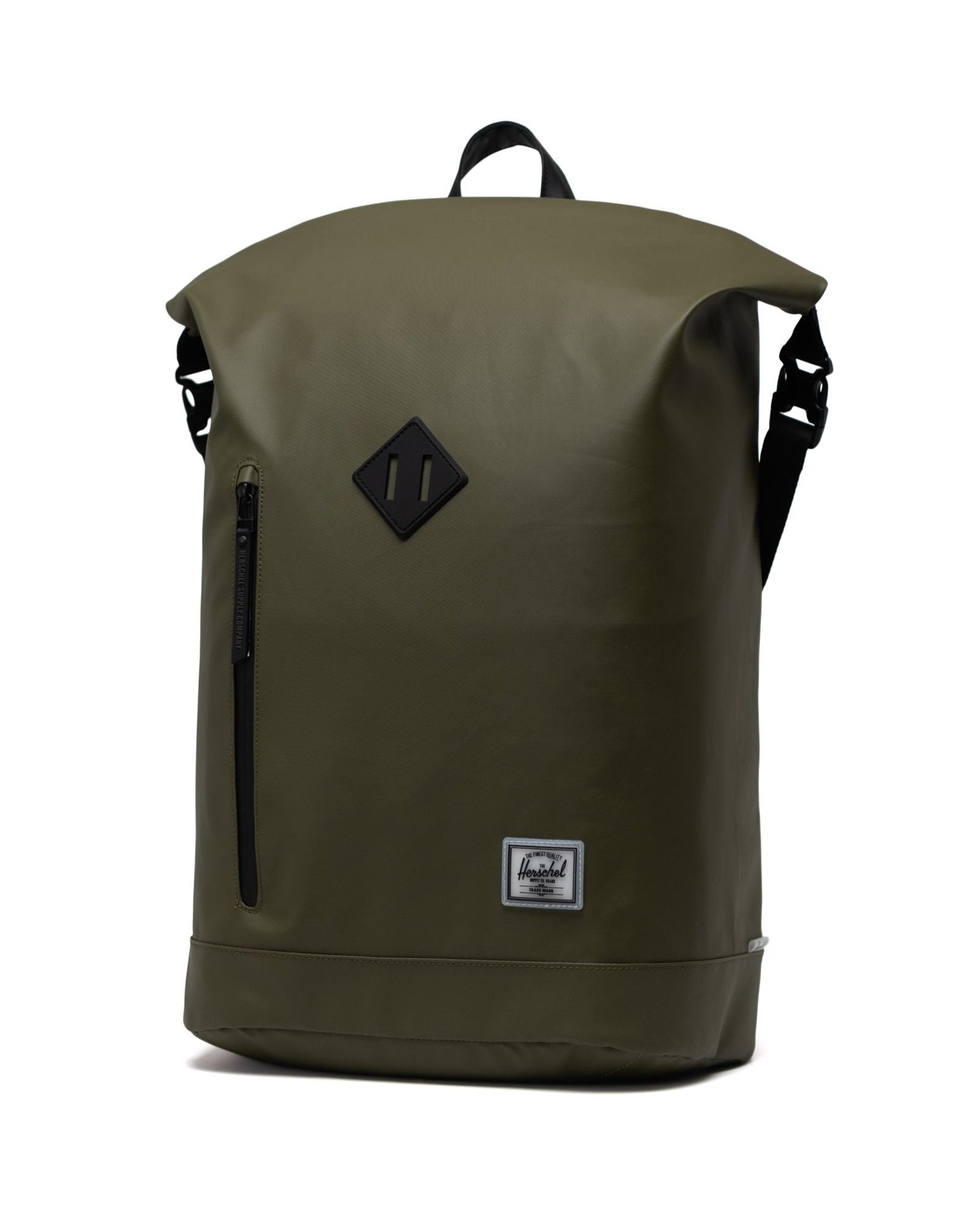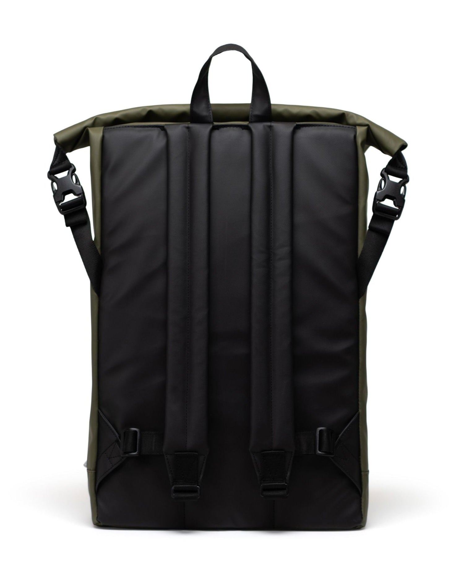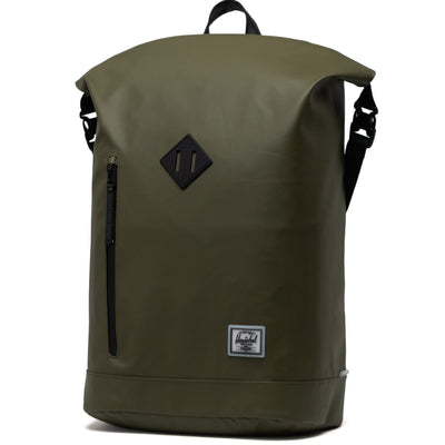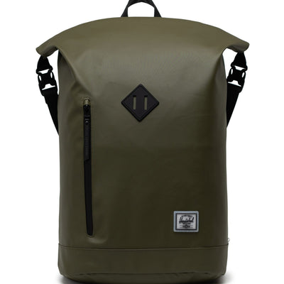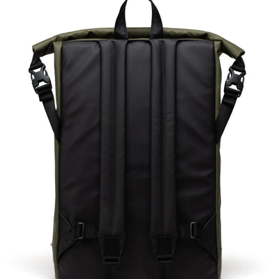 The Roll Top Backpack in Ivy Green by Herschel is ready for rain. Constructed with recycled materials and a matte coating, the weather-resistant backpack features a roll-up sealing system to keep your tech and essentials dry on daily journeys.