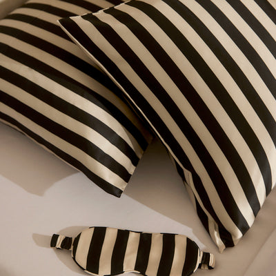 Experience do-not-disturb beauty sleep with Hommey's luxuriously soft Silk Eye Mask in Vanilla Bean Stripes. Made from mulberry silk for high breathability. Featuring internal cushioning and an elasticated strap for comfortable blackout coverage, drift into your deepest sleep yet.