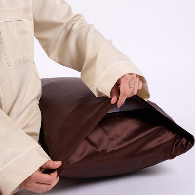 Experience do-not-disturb beauty sleep with Hommey's luxuriously soft Silk Pillowcase in Cocoa. Made from 100% mulberry silk for high breathability and comfort, this silk pillowcase provides both hair and skin care benefits while you rest. Finished with a simple envelope closure and packaged in a colour-matched magnetic closure box, perfect for gifting.