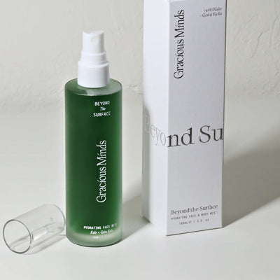 The Beyond the Surface Hydrating Face Mist by Gracious Minds is a hybrid serum mist formulated to instantly hydrate and calm the skin's barrier whilst also improving the underlying skin. Wheatgrass, Japanese knotweed and gotu kola nourish your skin with potent green superfoods while hyaluronic acid & pea peptides assist in intense hydration and skin protection, cucumber and kale extract both work to lessen skin irritation and active blemishes.