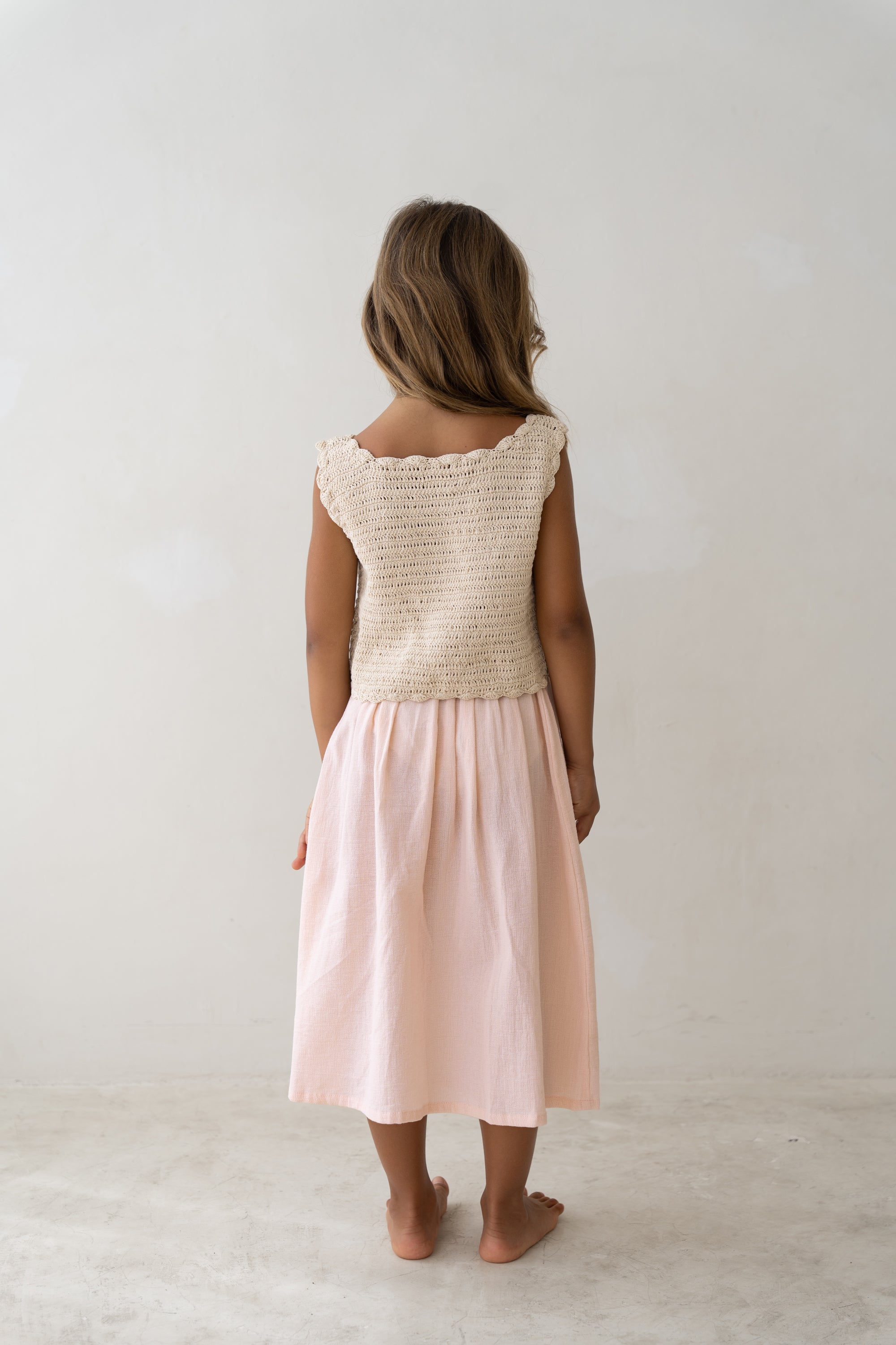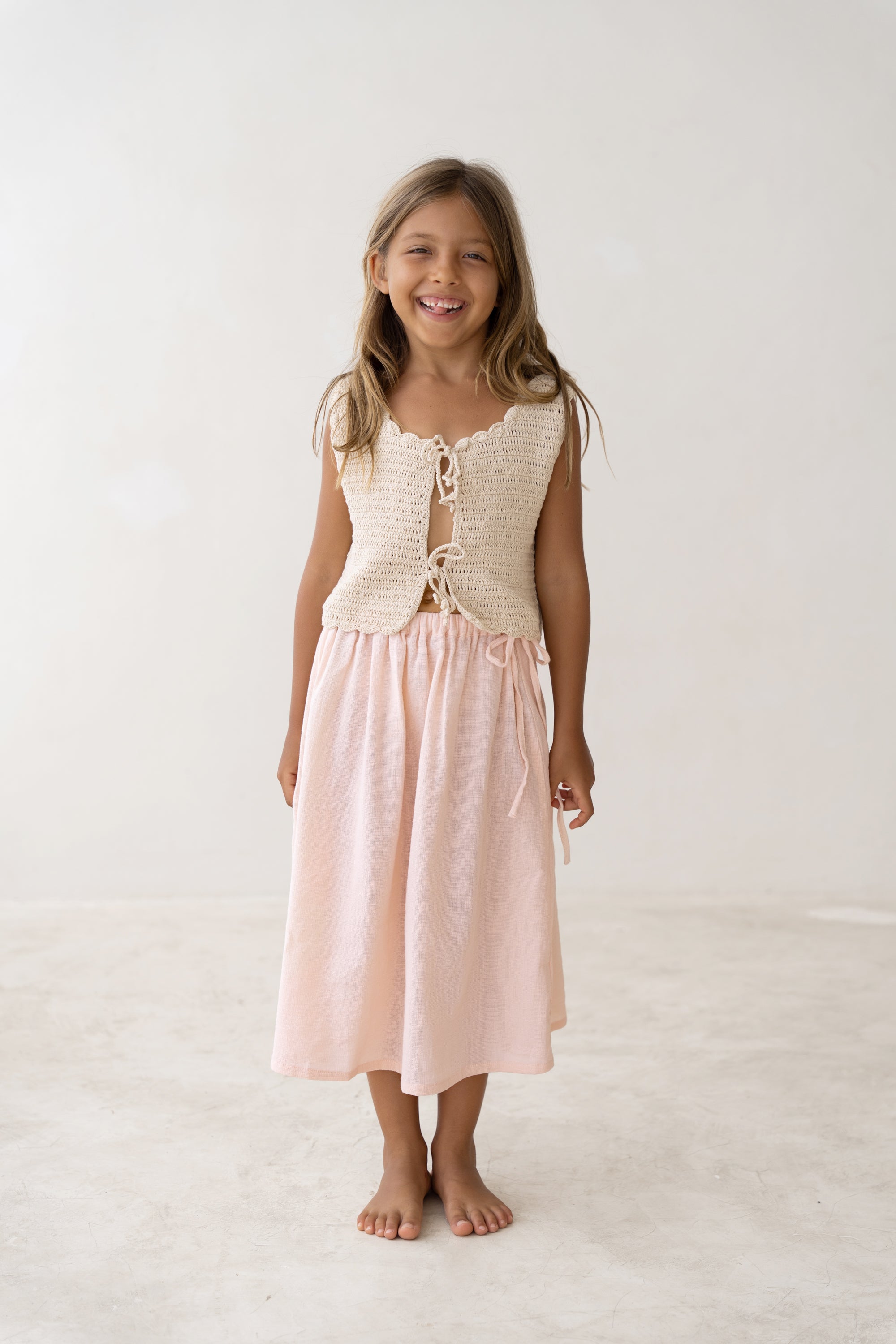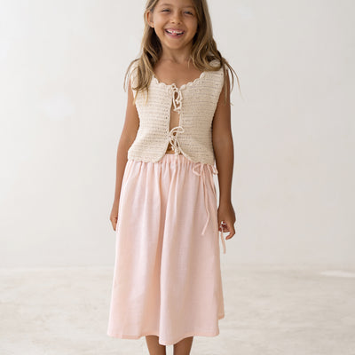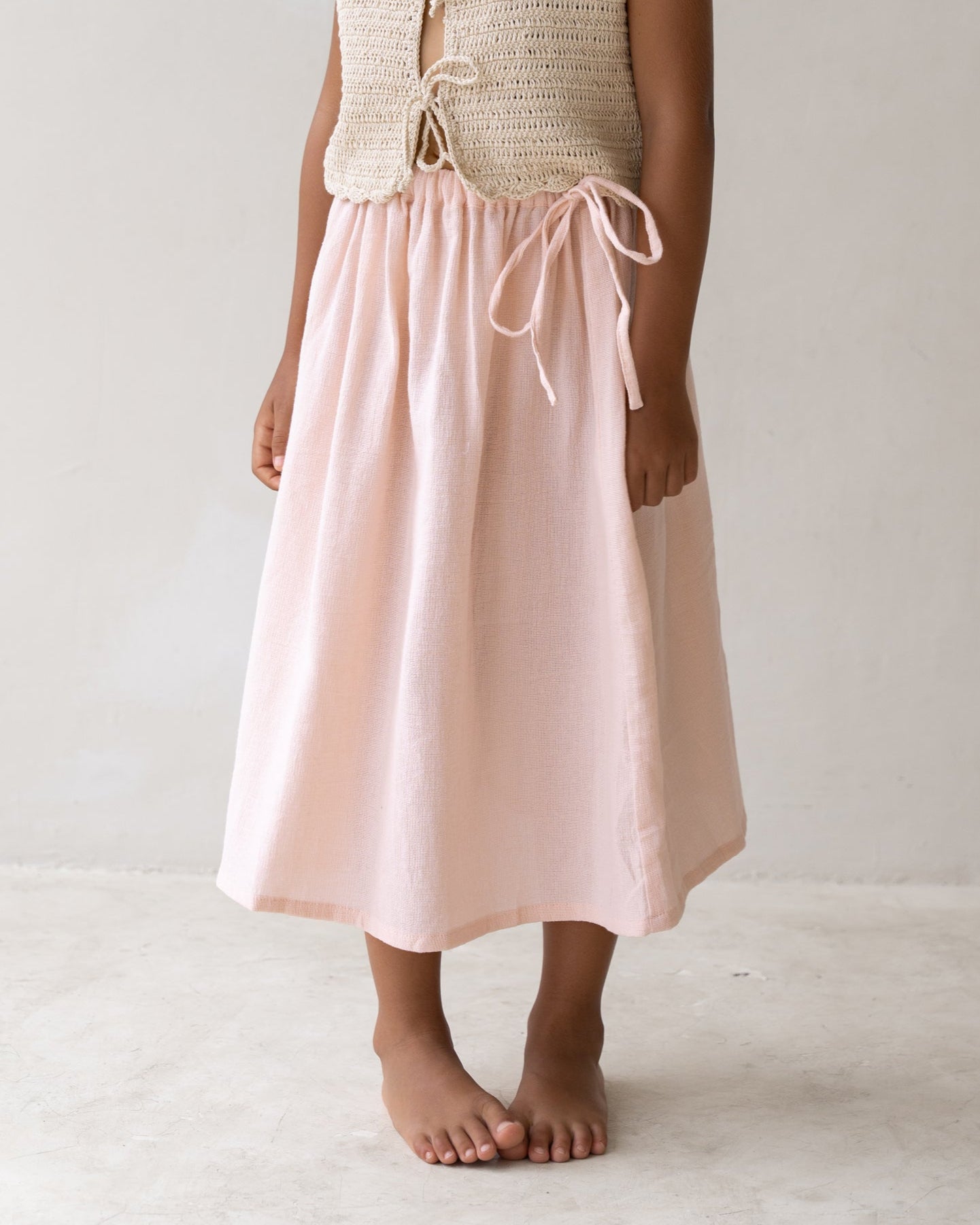 Brimming with femininity and crafted from natural cotton, the Posie Skirt in Pink Salt by Illoura features an elasticated waistband with a functional drawcord. The perfect trans-seasonal piece.