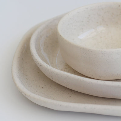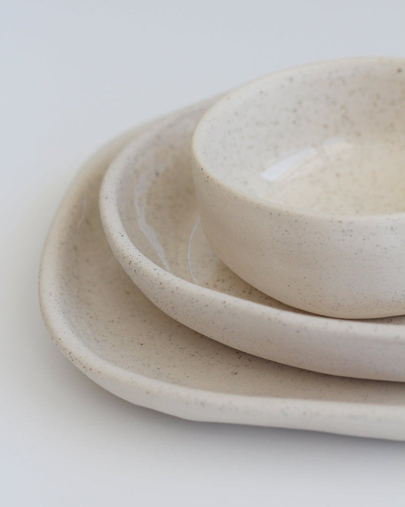 The Oat Side Plate by locals, JS Ceramics is the perfect size for your morning slice of toast. Made with oatmeal-coloured clay that has been mixed with locally foraged sand, then coated in a clear glaze to preserve the beauty of the sandy clay itself.