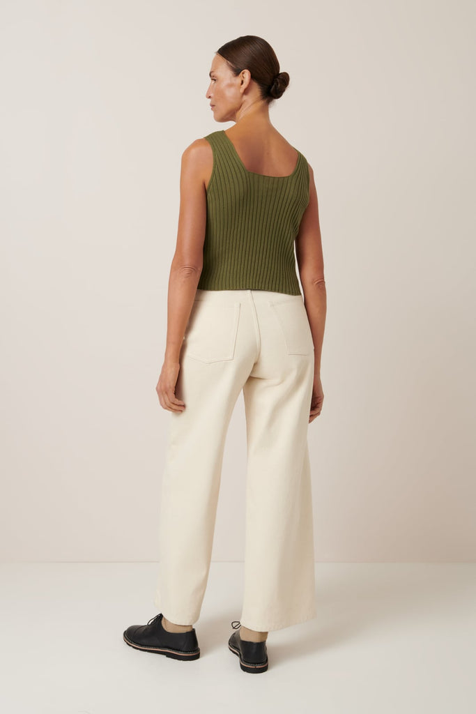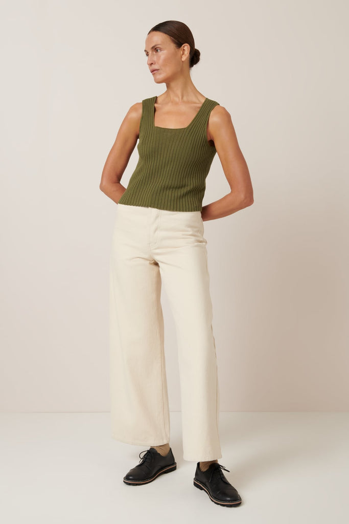 Knitted in organic cotton rib, the Delta Singlet by Kowtow has a standard fit, gently shaping to the body. It features a square neckline and wide straps - a playful contrast with the softness of the rib.