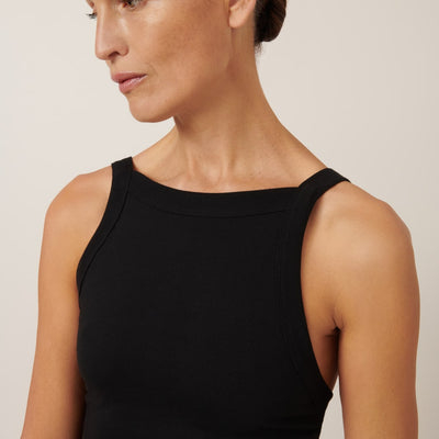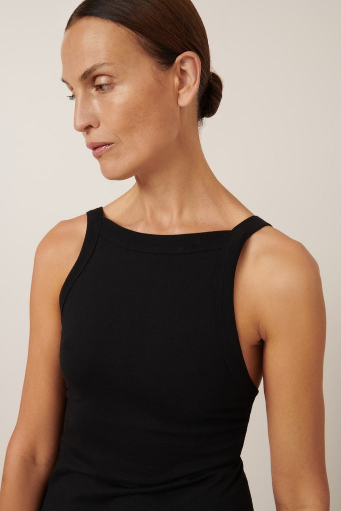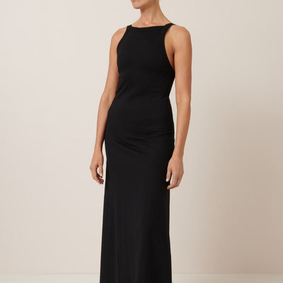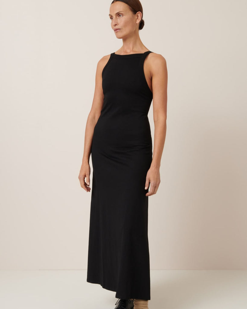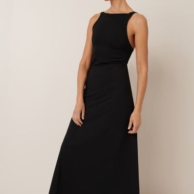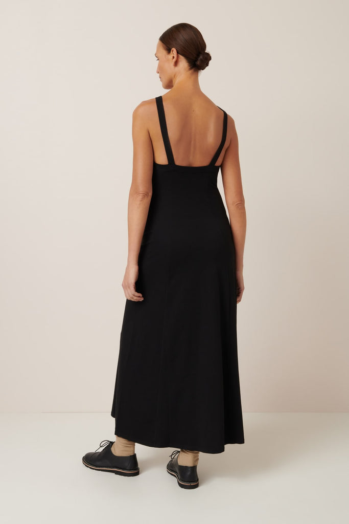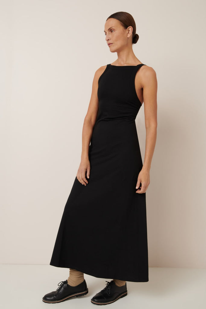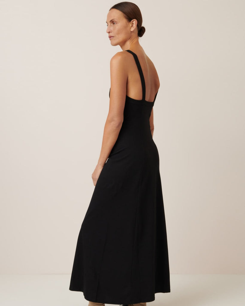 Kowtow's Low Back Dress is a statement, slip-on style, designed with a form-hugging, close fit. It features a high neckline and a low square back, falling to a full length skirt. A verstatile addition to your wardrobe.