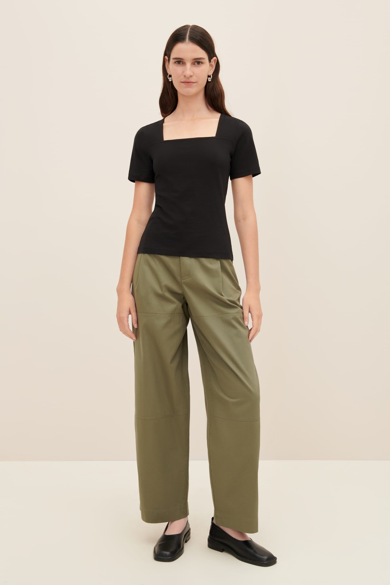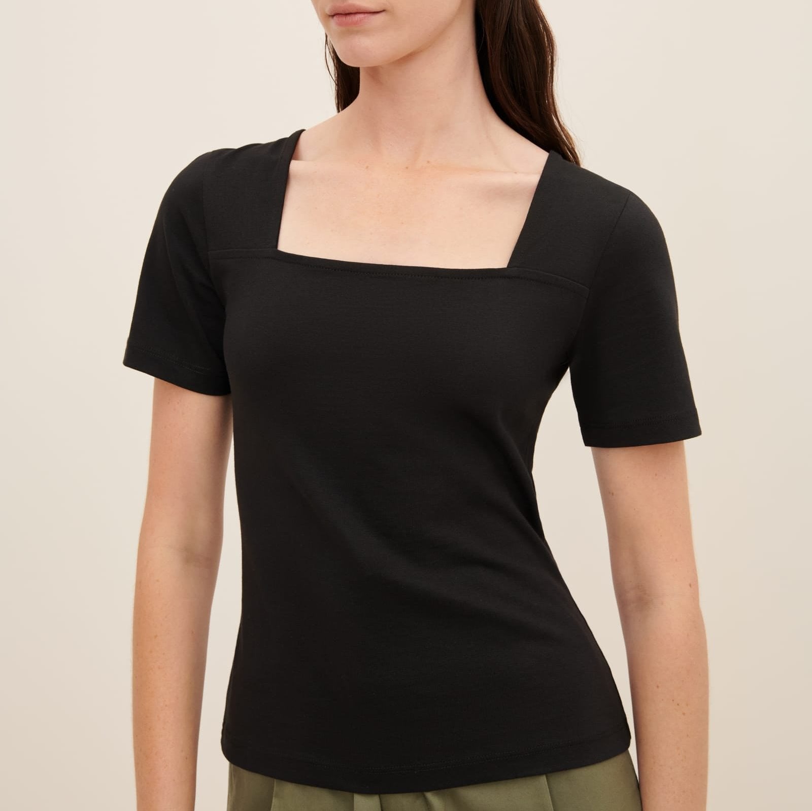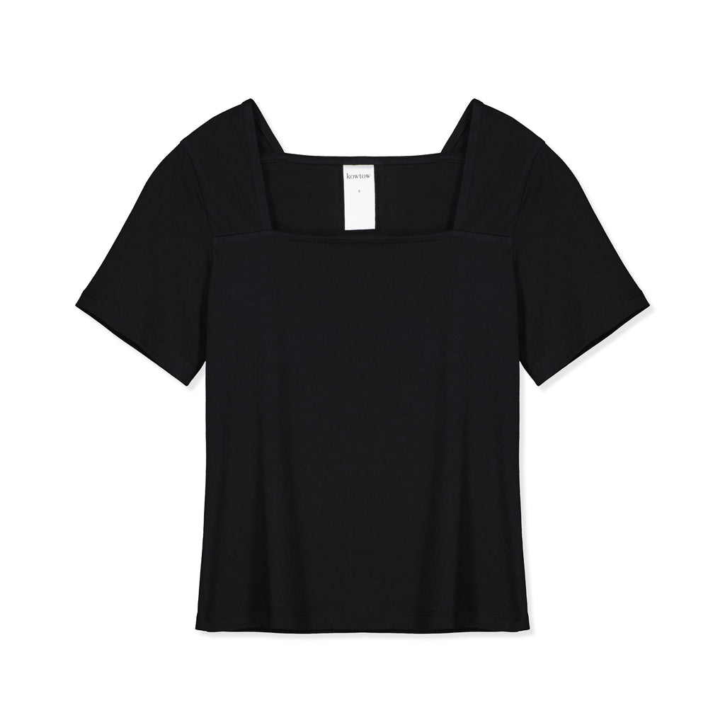 The Square Neck Tee by Kowtow is a close-fit style defined by a square neckline. The refined design is completed with short slim sleeves and made from midweight organic cotton jersey.