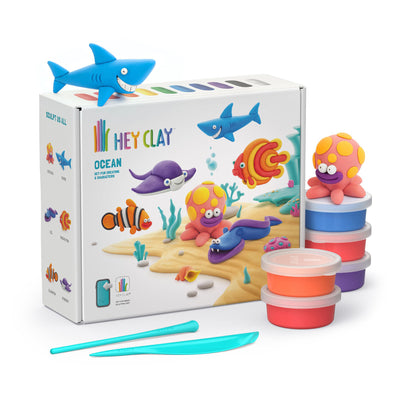 Let your youngster's imagination run wild with this vibrant Ocean Air-Dry Clay Kit by Hey Clay, featuring 15 tubs of soft modelling clay in fun colours. Helping to develop their fine motor skills and boost imagination, this set will have them moulding all sorts of underwater creatures.