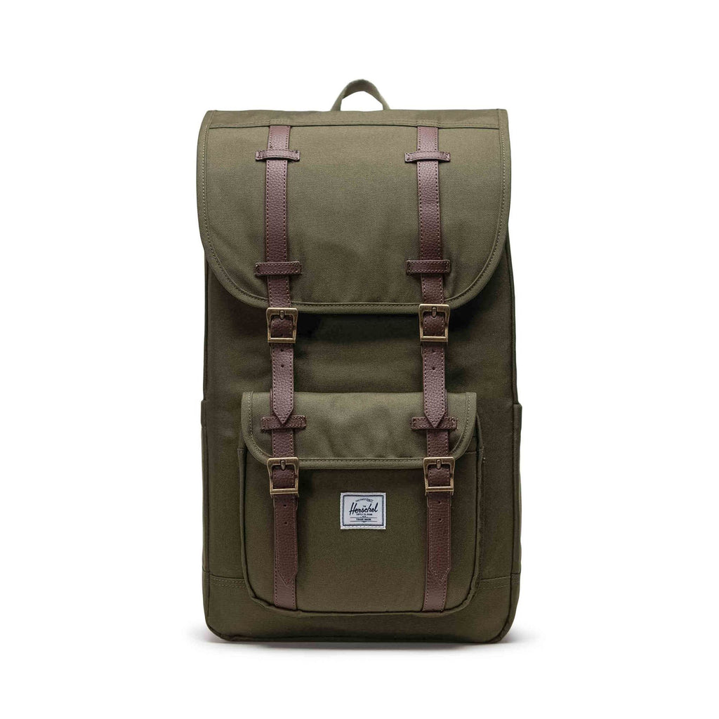 The Little America Backpack in Ivy Green by Vancouver-based Herschel is a signature style. The Little America is an iconic mountaineering backpack, made modern for daily adventures. Reinvented with recycled EcoSystem materials - this one's built to carry everything you need for a full day.