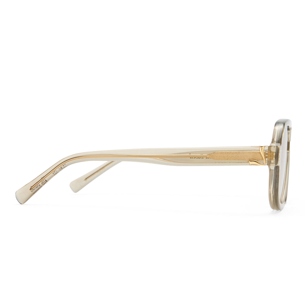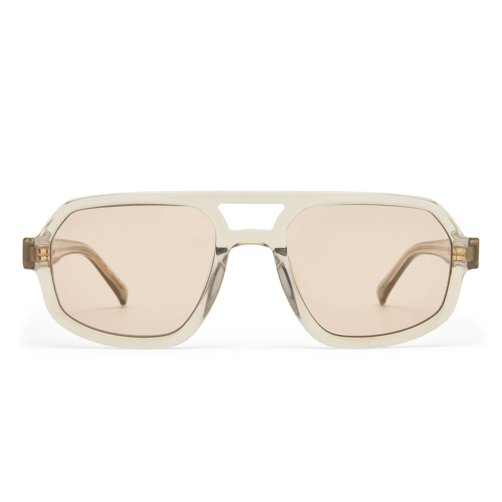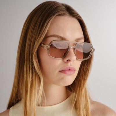 The Banks Sunglasses in Eucalyptus by Luv Lou is an oversized aviator frame designed with thin temples to create a wearable classic silhouette. The Banks feature Luv Lou's signature organic L on both temples to elevate this staple. Handcrafted with premium eucalyptus acetate and paired with a tan tint lens.