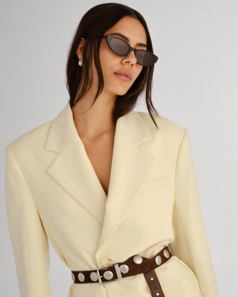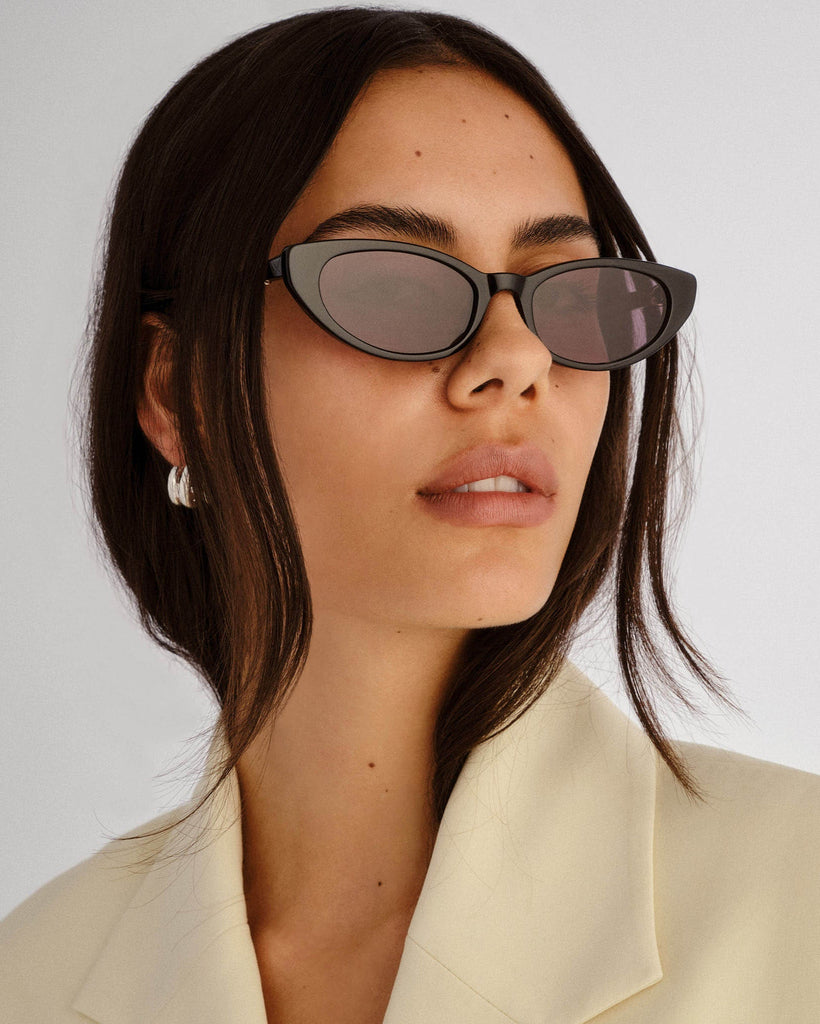 The Blair Sunglasses in Black by Luv Lou are a perfect balance of sharp and sophisticated. The Blair is a micro cat-eye frame with a sculptural feel - featuring fine temples adorned with twisted rope gold hardware that adds texture and a touch of vintage romance.