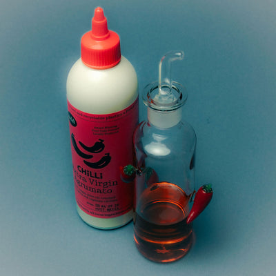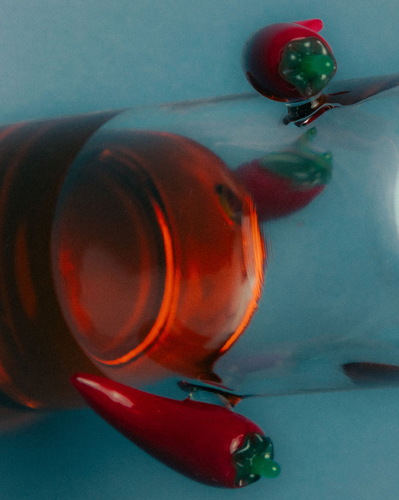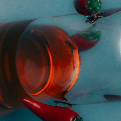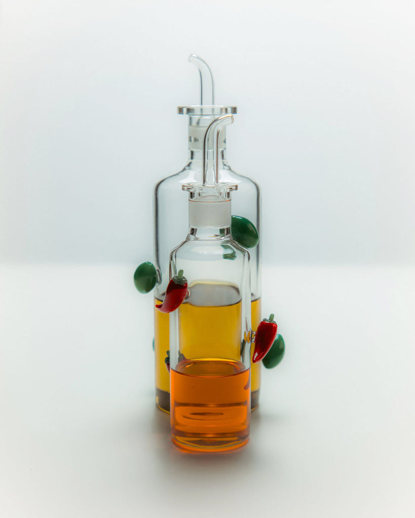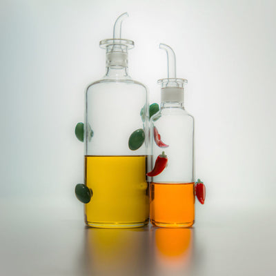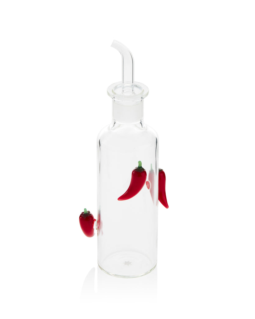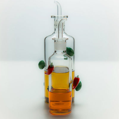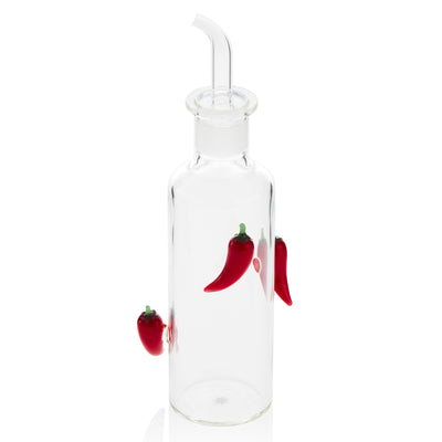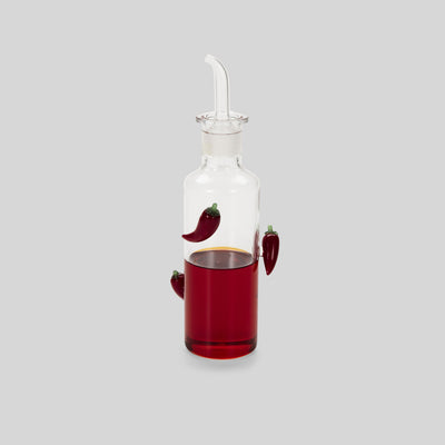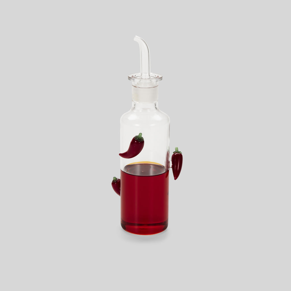 Spice up your culinary ritual with this playful glass Chilli Bottle by Maison Balzac, expertly designed to dispense your favourite chilli oil in the most elegant way. Handcrafted glass chillies are studded across the bottle, adding just the right touch of heat (no extra flakes required!). Let this vibrant vessel become the fiery centrepiece of your kitchen, ready to ignite every dish (and conversation).