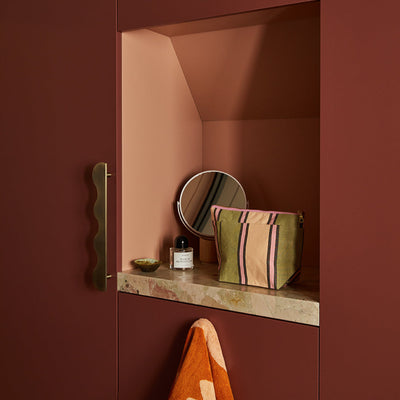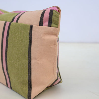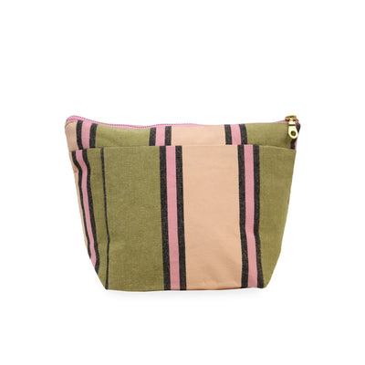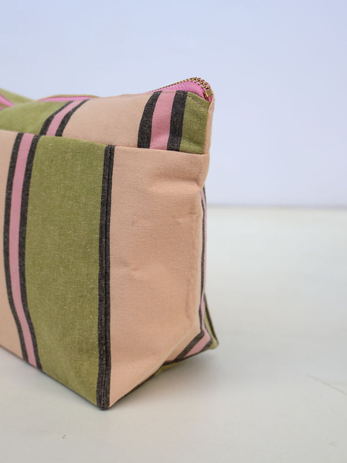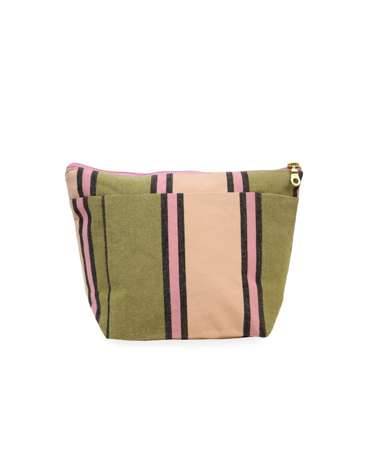 The Carnival Stripe Cosmetic Case by Mosey Me is a generously sized bag designed to hold all your must-haves. Made from woven cotton and featuring a stripe design, this cosmetic case features a wide opening, cotton canvas lining and a chunky gold zipper to elevate your beauty routine.