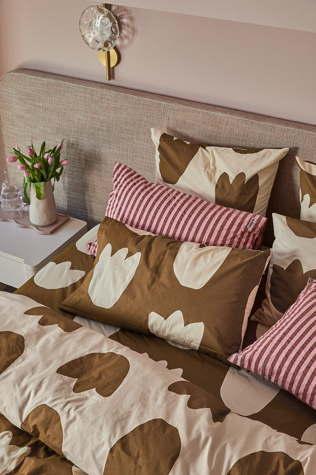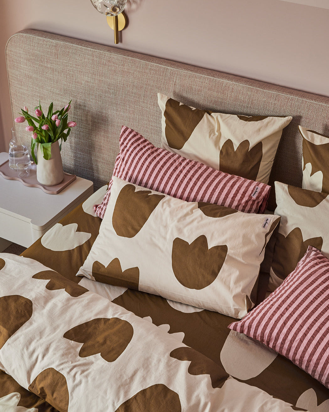 Sleep soundly with the Reversible Tulip Pillowcase Pair by Mosey Me. These pillowcases feature an oversized floral print in a neutral palette, with calming mocha and cream tones instantly adding a contemporary feel to any bedroom. Add the matching quilt cover to complete the look.