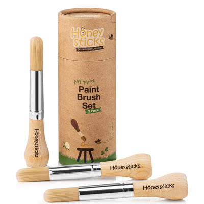 Honeysticks My First Paintbrush Pack is the perfect first paintbrush for babies and toddlers aged 1-3. The ergonomically designed handle helps little ones have better brush control than regular-sized brushes for a great paint experience.