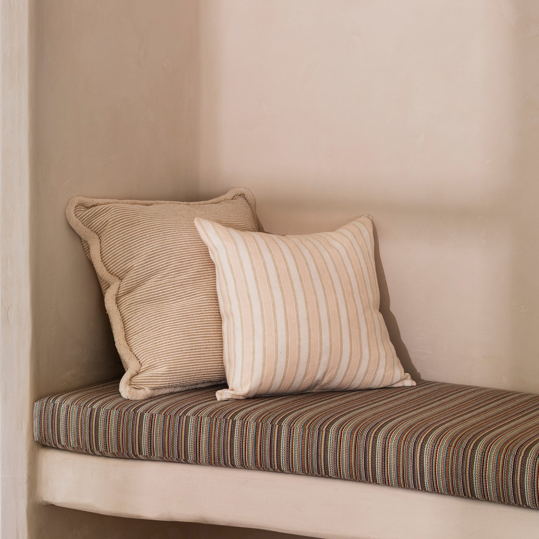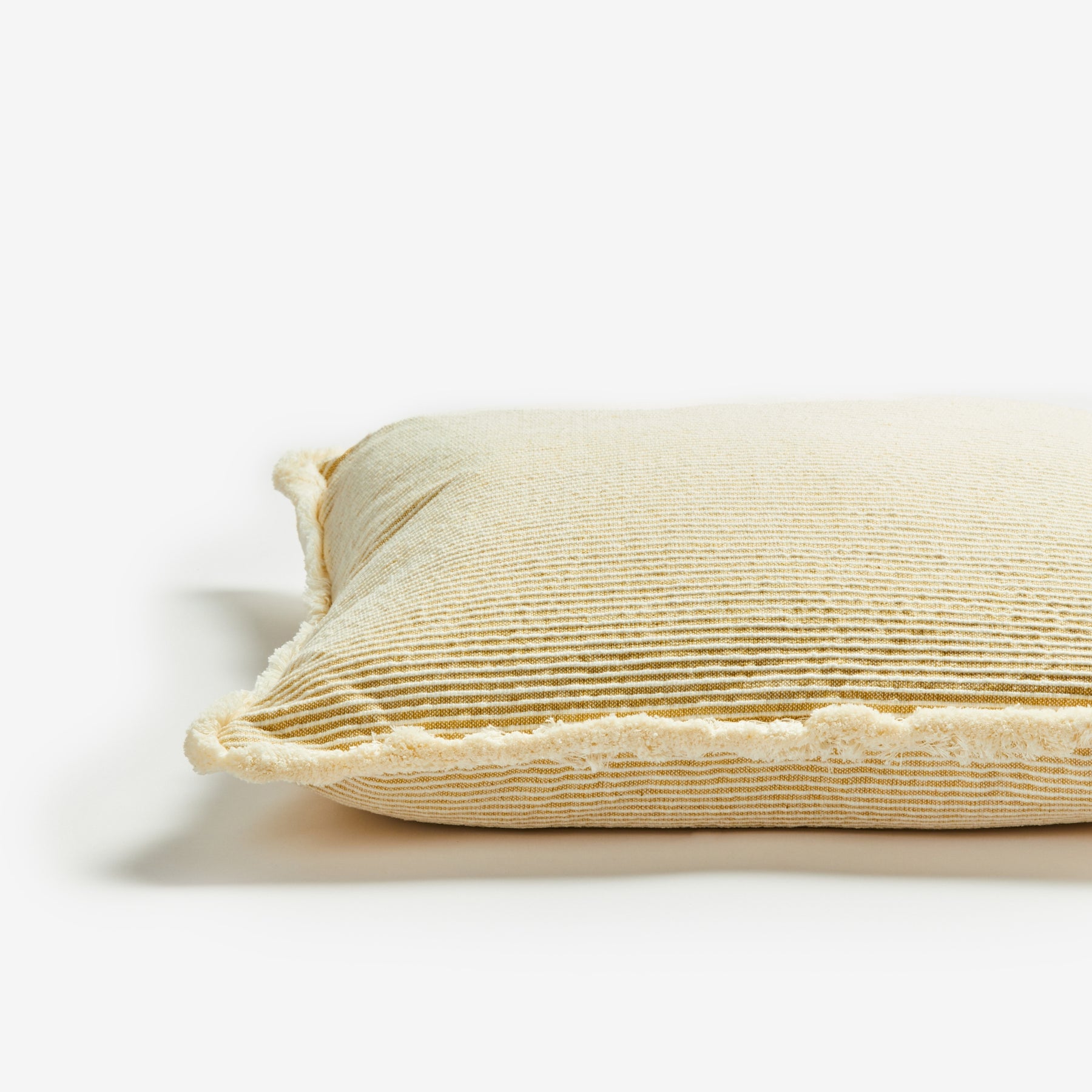 Your new season must-have, the Nile Mustard Cushion Cover by Bonnie & Neil features a raised subtle stripe, finished with a soft and fluffy cream fringe trim. Inspired by textures, patterns and colours found in nature, this charming cushion pairs beautifully with patterned cushions or stands out on its own for a minimalistic look.
