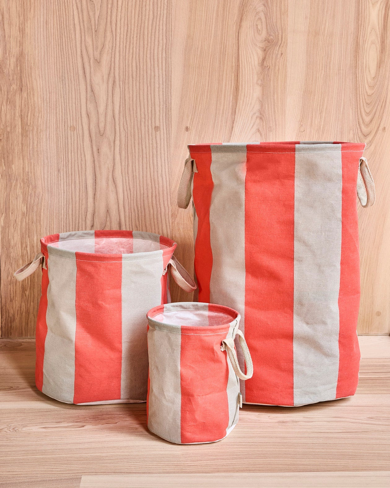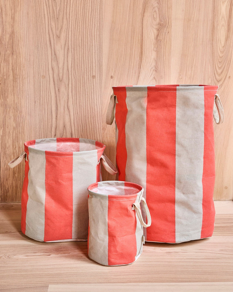 The Kara Hanging Baskets in Cherry Red by Oyoy are compact and perfect for organising small accessories like cosmetics, office supplies, or craft materials. Featuring a stripe design and durable PE coating, these baskets provide a practical and aesthetic solution for keeping smaller items neatly stored.