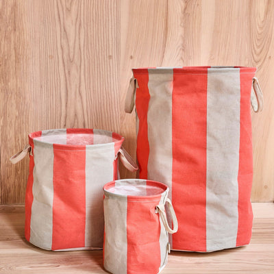 The Kara Large Basket in Cherry Red by Oyoy feature a striped design and is perfect for a variety of storage needs. With a PE coating, the basket is durable and ideal for organising items in any room. Its versatile design makes it a practical solution for both functional and aesthetic storage.