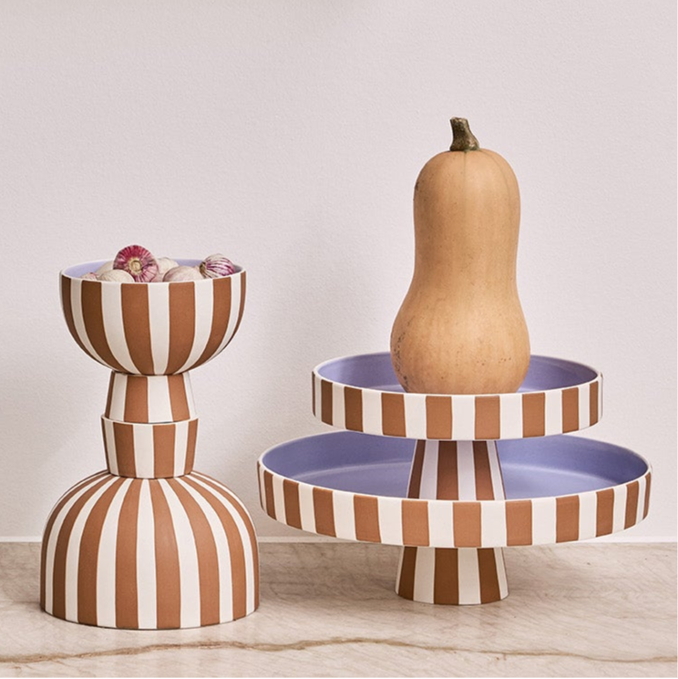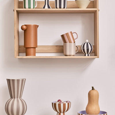 The Toppu Trays by Oyoy feature a hand-painted striped design with a splash of colour, making it a bold and playful addition. Perfect for serving snacks, drinks, or organising small items, it combines practicality with playful design. Each tray is hand-painted, ensuring that each piece is unique.