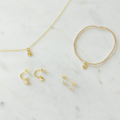 Sunny Bracelet, a part of our Here Comes the Sun collaboration between Paper Plane & SOPHIE. A petite sun motif shines brightly through each of our four pieces in the collection. Sunny is designed for everyday wear, effortlessly complementing any outfit.