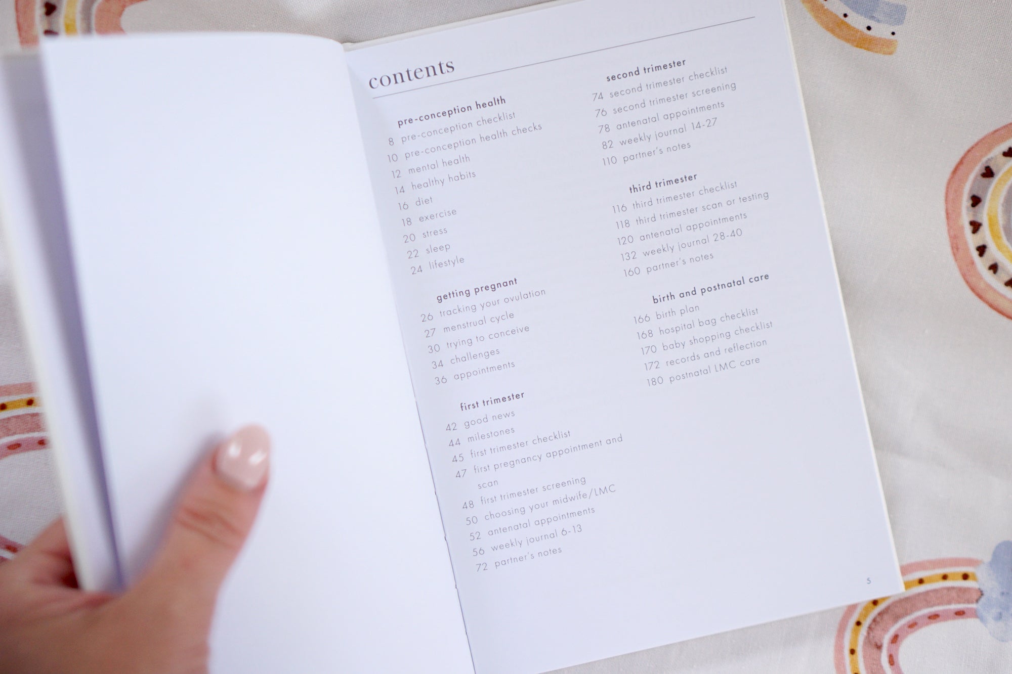 - Pre-conception checklist and personal health diary: mental health, healthy habits, diet, exercise, stress, sleep and lifestyle
