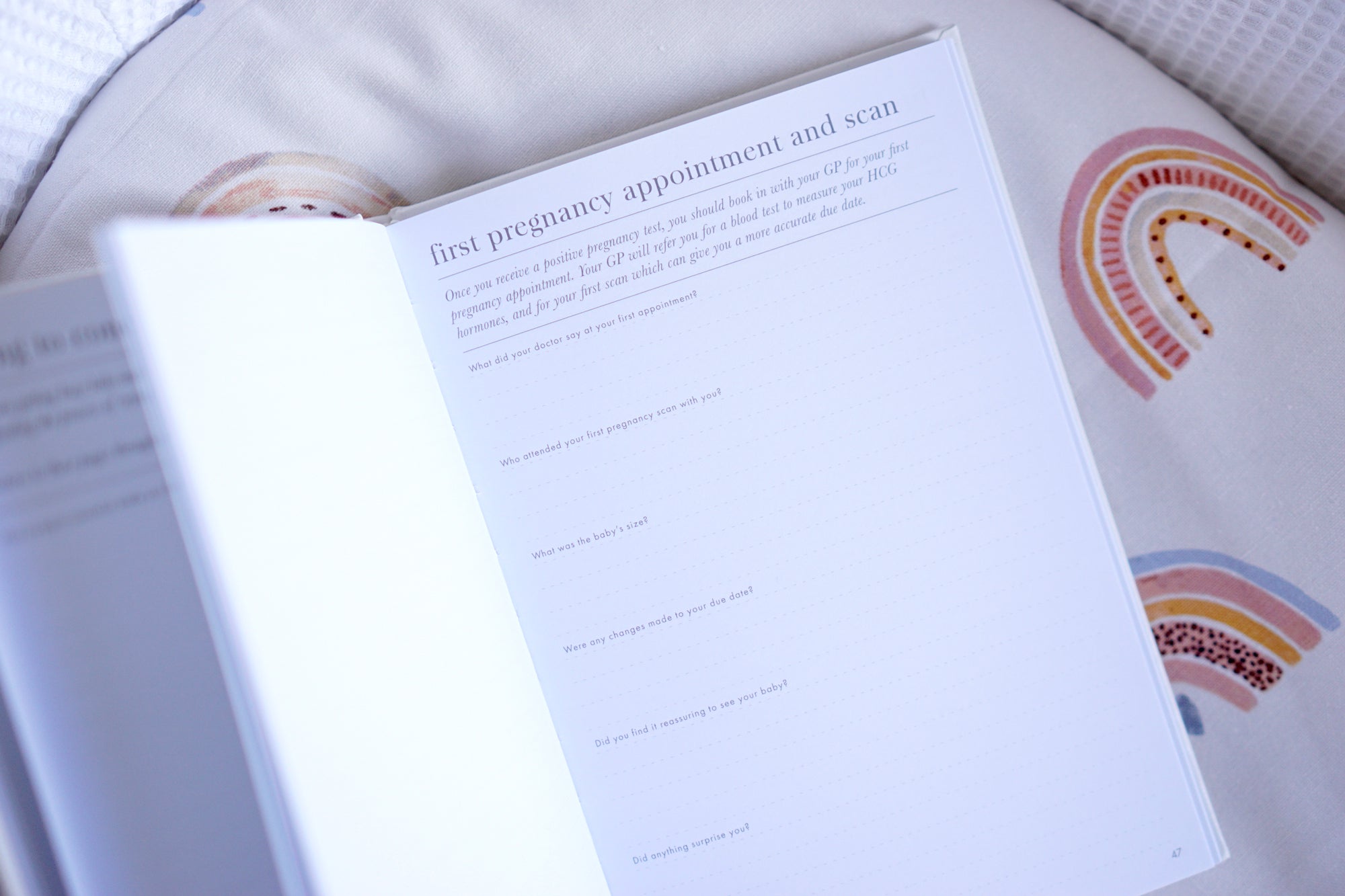 Each week guides you through questions about your body and your baby, with space for photos of your ultrasound scans, your growing bump, or any other special memories. There are also dedicated pages for partners to make their own notes, complete with unique prompts. The concluding chapters of the book are for your birth plan, hospital and shopping checklists, and finally your post-birth records, reflections and postnatal appointments, as well as plenty of blank pages for you to continue your diary, or include your first new family photos.
